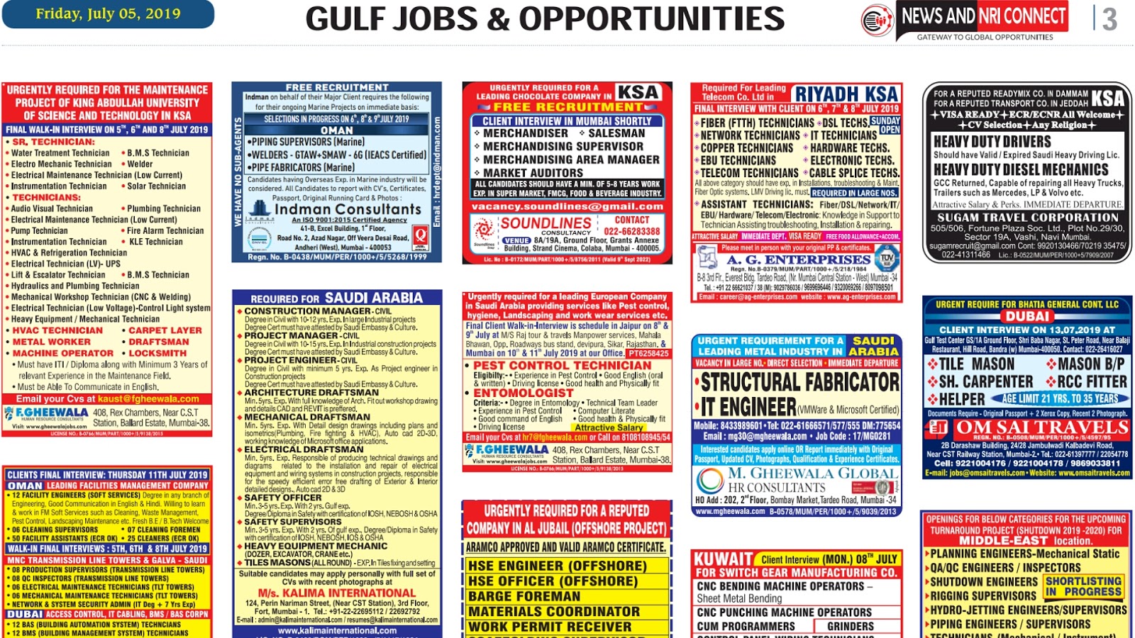 HomeUncategorized5 July 【News & NRI Connect e-Paper】Uncategorized5 July 【News & NRI Connect e-Paper】By Gulf JobJuly 6, 20190ShareFacebookWhatsApp WhatsApp Group Join WhatsApp News & NRI Connect Powered By www.gulfjobpaper.com Scroll Down & Like Our Facebook Page & Join Facebook Group. ~ Click here to download 5 July 2019 e-paper. File Size- 7 MB ~ Click here to view 5 July 2019 e-paper. Share this e-paper with Friends on WhatsApp Share on WhatsApp Latest Job, Gulf Job, Abroad Job, Iraq Job, Yemen Job, Bahrain Job, Egypt Job, Jordan Job, Yemen Job, Sudan Job, Dubai Job, Oman Job, Saudi Arabia Job, U.A.E Job, Qatar Job, Kuwait Job. .. WhatsApp Group Join WhatsApp Previous article6 July 2019 【Abroad Jobs】~ {e-paper}Next articleUpcoming Gulf Jobs InterviewGulf Job
