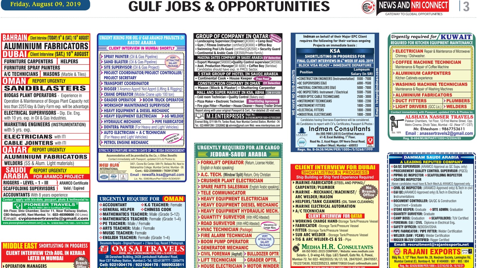 There are a lot of vacancies published in today’s e-paper. You may view & download those papers. Find your desire job and Shortlist yourself before Interview. There are many Agencies who is doing fraud with jobs seeker. Be aware & always look for good offices for your future job. Also be aware from fraud Agents. Move directly to office for interview or interview details. Some jobs seeker directly ask for job & also offer money to a unknown people, remember that nobody have authority to give job without any legal Interview conduct in a genuine office. All the best for your future.