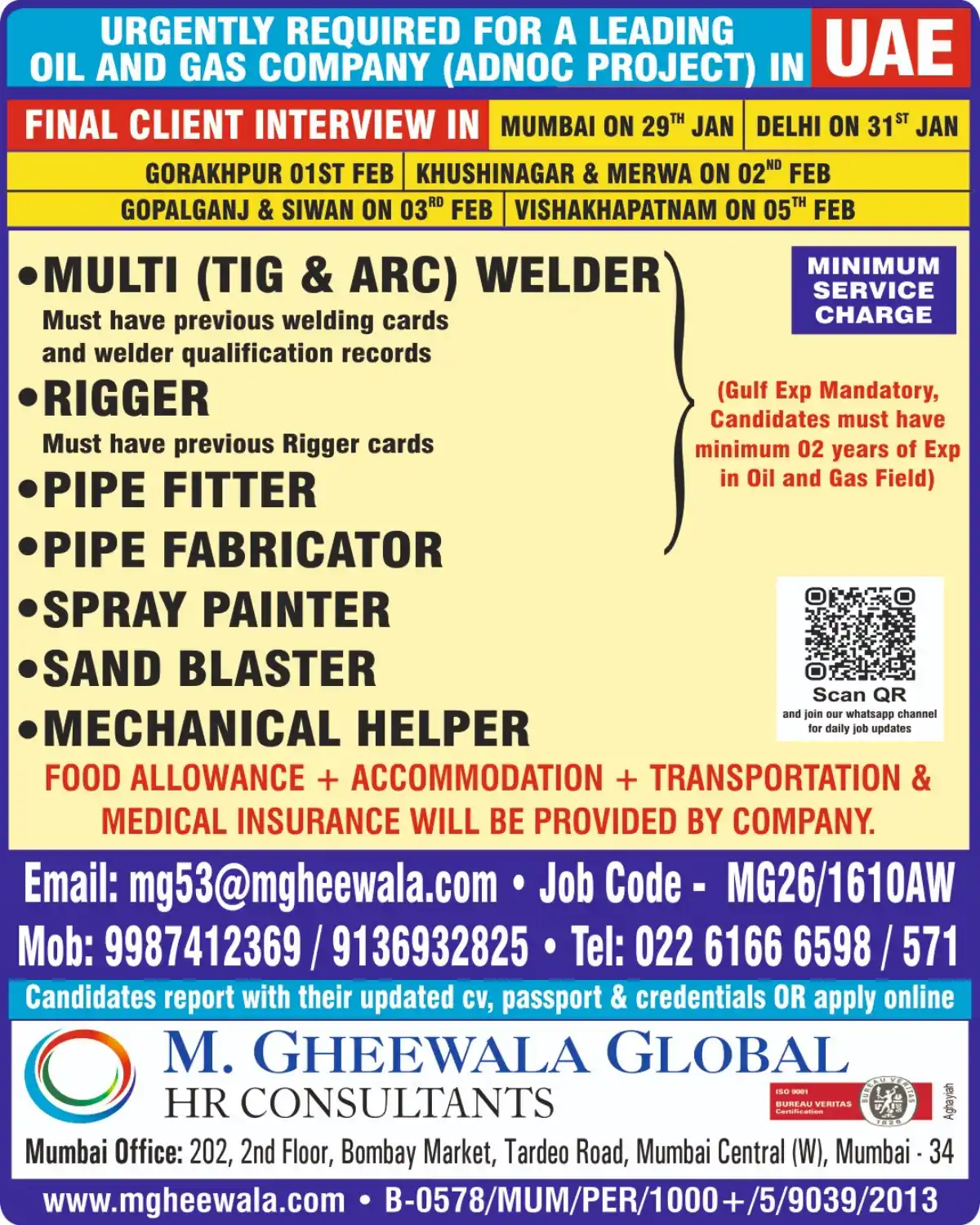 Option 2 (Online Application): Email your application to mg53@mgheewala.com. Please mention Job Code: MG26/1610AW in the subject line.