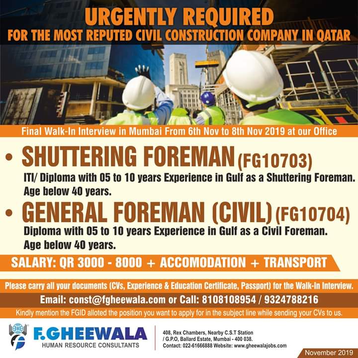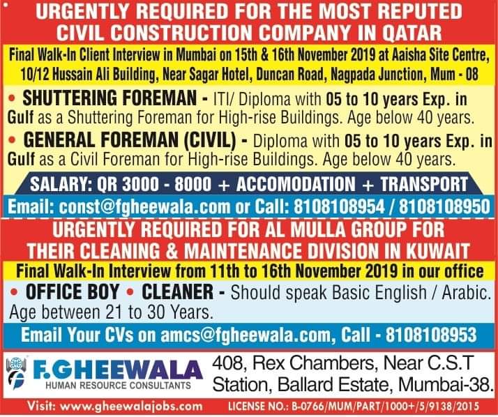 F Gheewala human resource consultants is good consultant in Mumbai. There are various vacancies available in this office for Gulf countries.