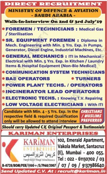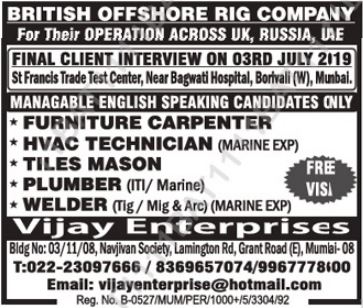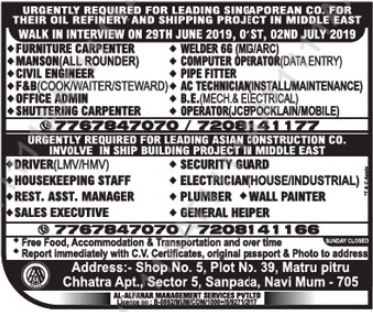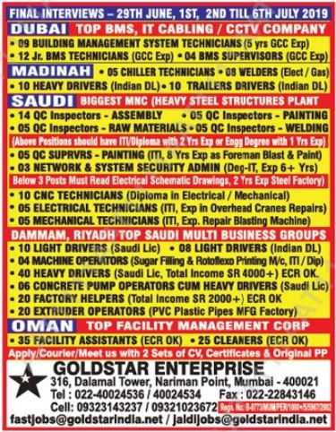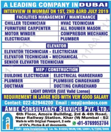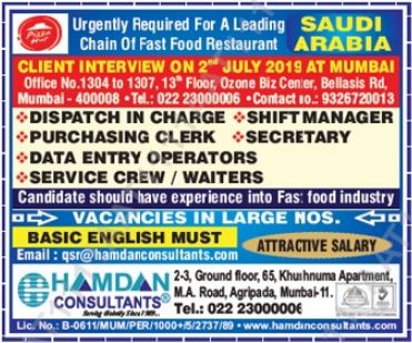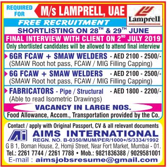 Interview will held on 2 July 2019 in Mumbai in different offices.