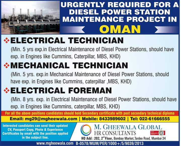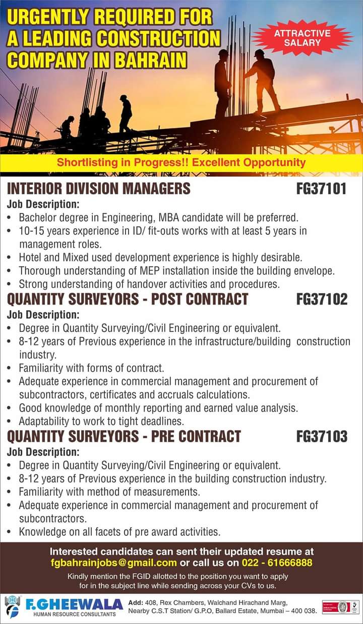 • Construction Superintendent (Electrical, Mechanical, Civil)
