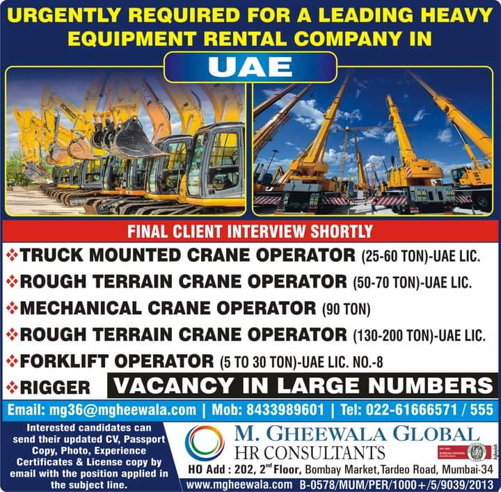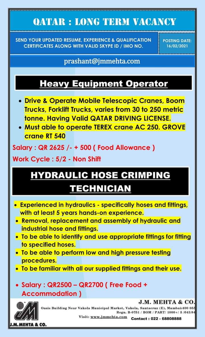 - Mobile Crane Operator (Only Qatar Valid & Expired
