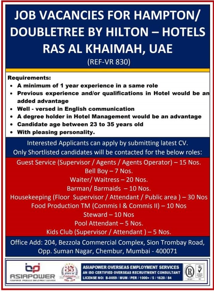 - Housekeeping (Floor Supervisor / Attendant / Public area)