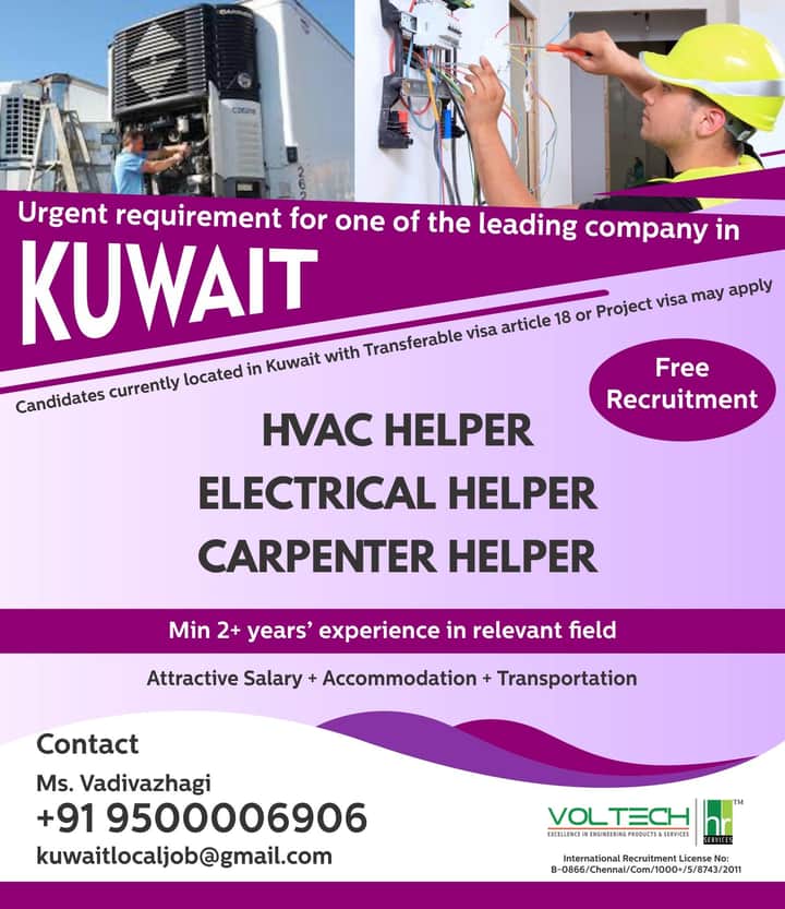 Requirement for one of the leading company in Kuwait, candidates must available in Kuwait