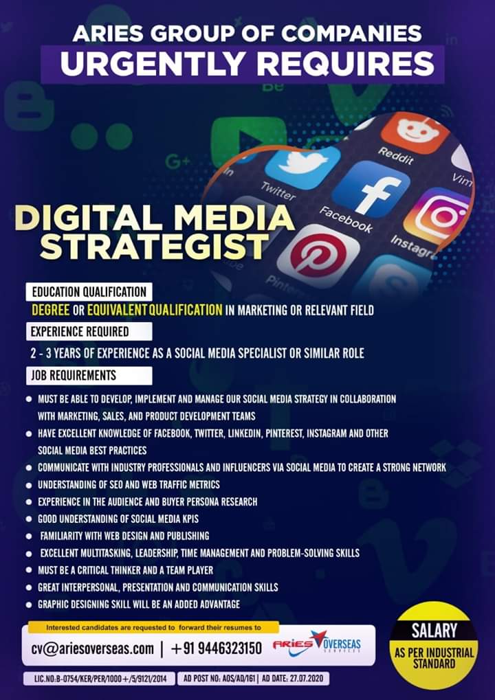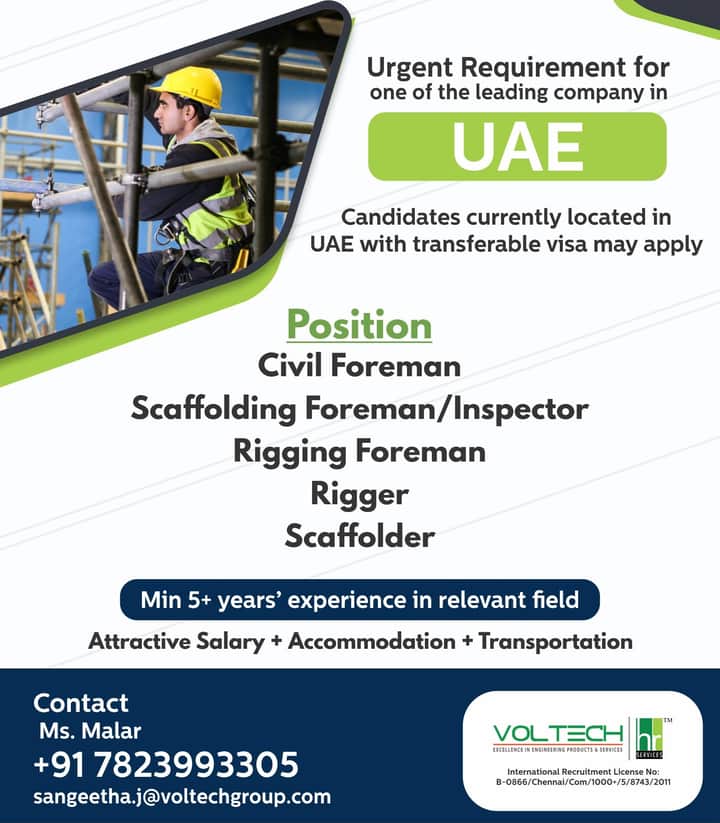 Required for a leading company in UAE, candidates must available in UAE to apply.