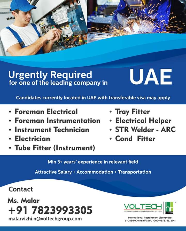 Urgently required for one of the leading company in UAE, candidates must available in UAE.