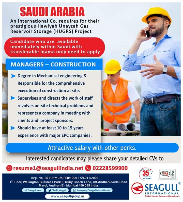 Jobs in Saudi Arabia, candidate must available in Saudi to apply