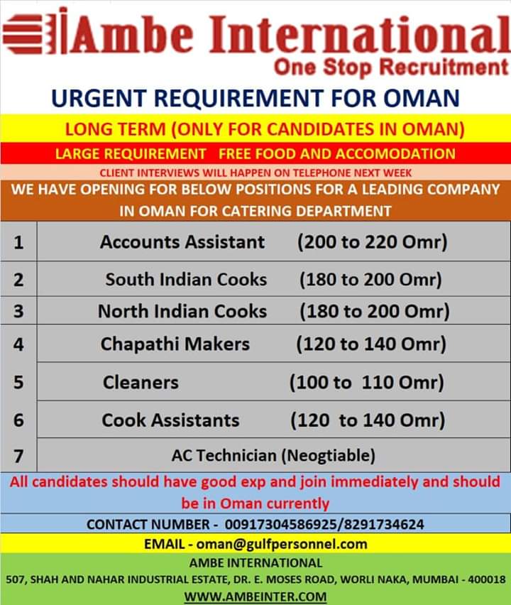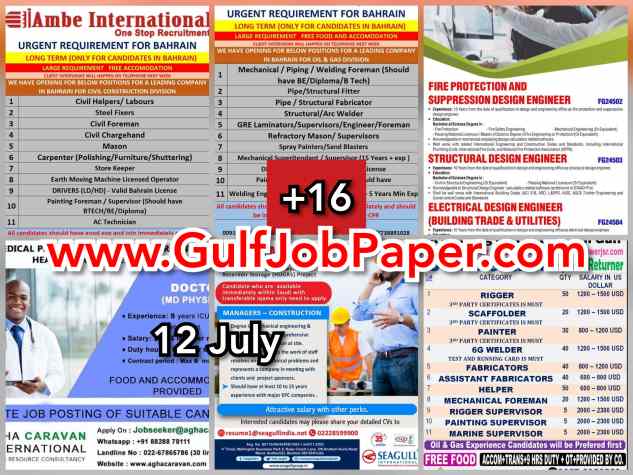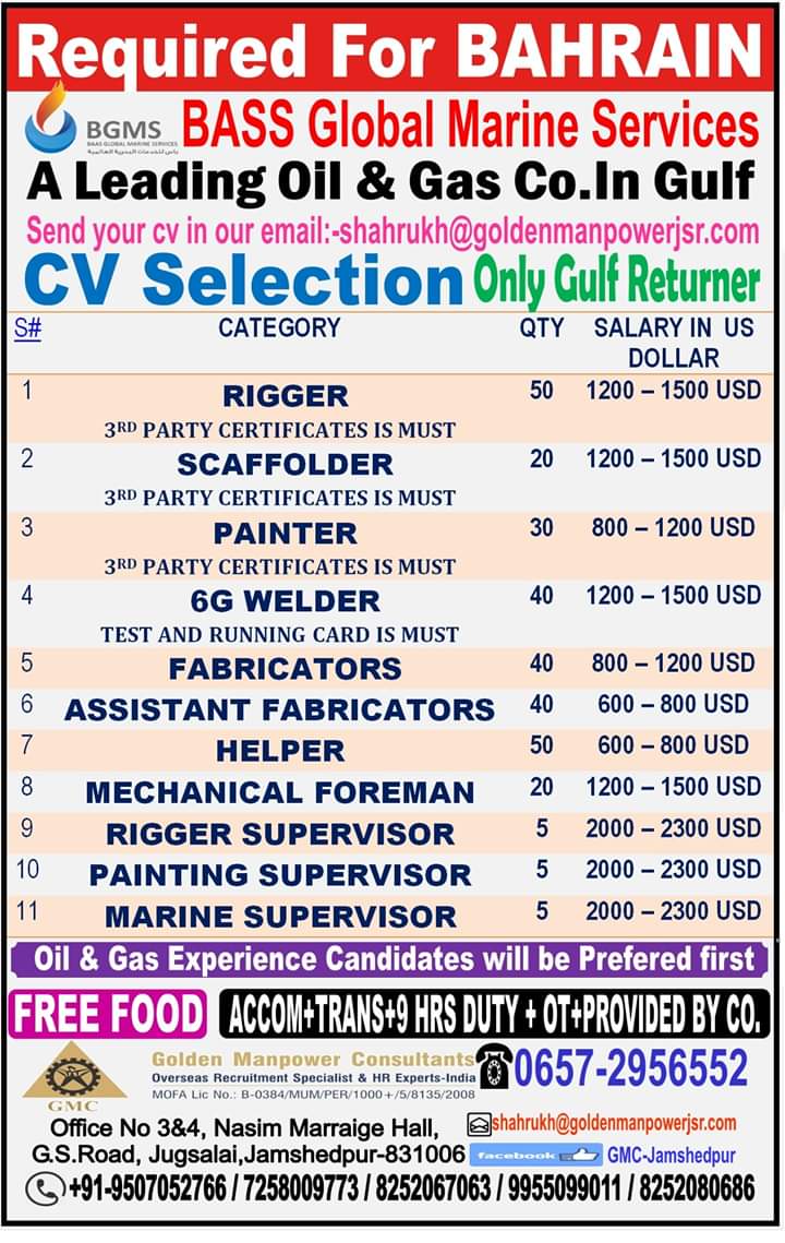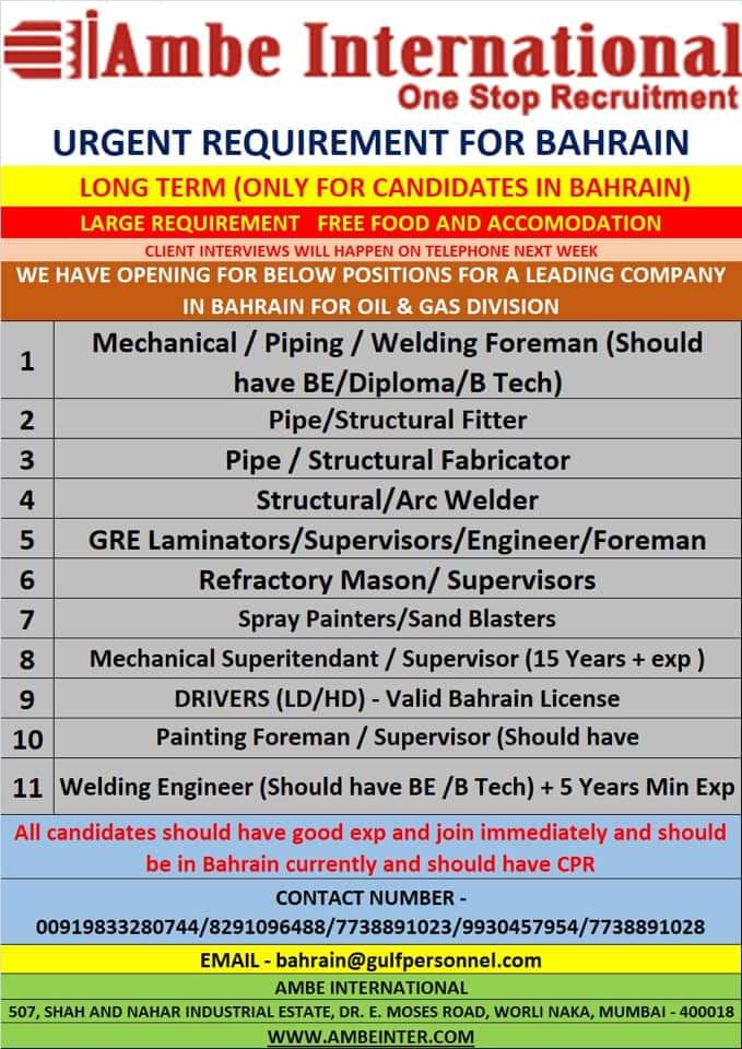 Urgently required for Bahrain, only for locally available candidate in Bahrain.