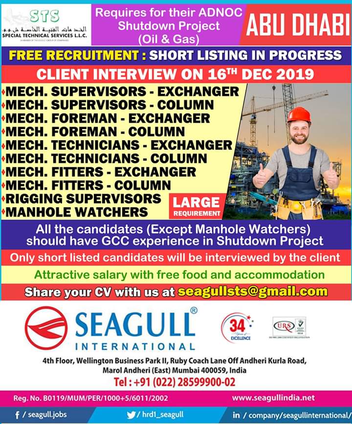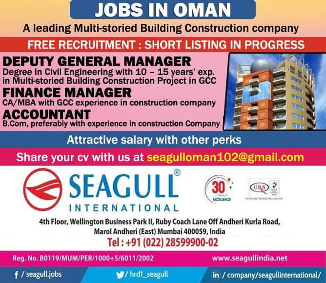 Seagull International is a good consultant for gulf jobs, Their Office address is 4th floor, Wellington Business park II, Ruby Coach Lane off Andheri Kurla Road, Marol Andheri (East) Mumbai 400059.