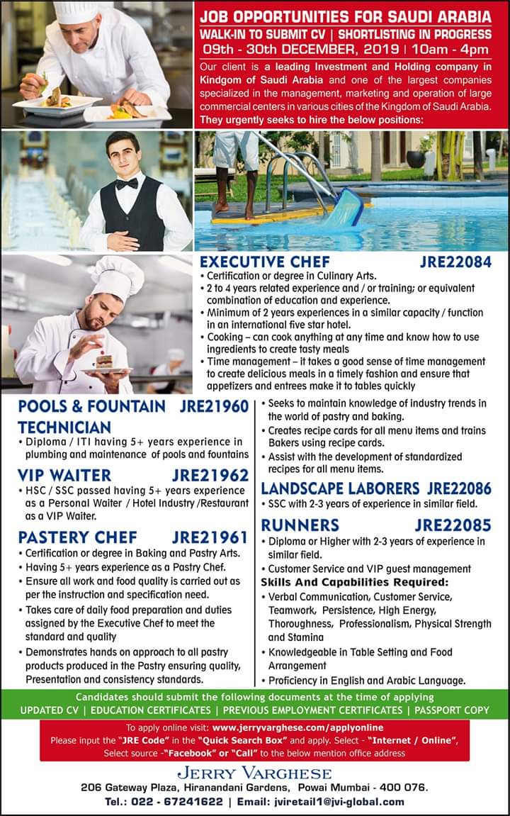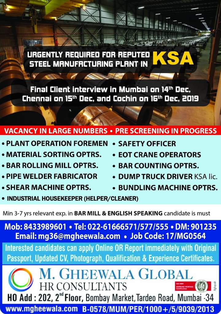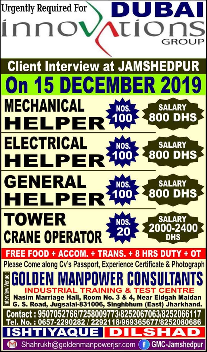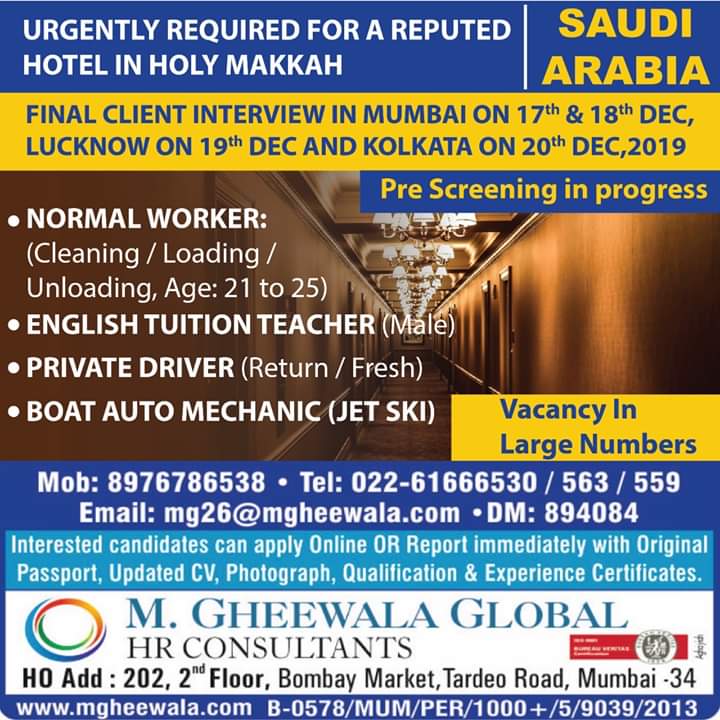 Jerry Varghese is one of the best consultancy in Mumbai. This consultancy is trusted and do genuine work. Upcoming gulf jobs interview in our office areavailable below. Various vacancies with various criteria are mentioned in every image.Digital Contact Details:-Phones-+91-2267341700Emails-jobseekers@jvi-global.comOffice Address:-313, Dalamal Tower, Nariman Point, Mumbai 40021Additional Information:-Requirements available in our office is mentioned below in image, If you are matching candidate by condition mentioned in image, You can come our office with original Passport with your CV to Shortlist yourself before Interview, Without Shortlisting process, No Interview will conduct on same date.Thank you.Vacancies Details:-Vacancies Details are Mention in imagesRead Conditions From Image.