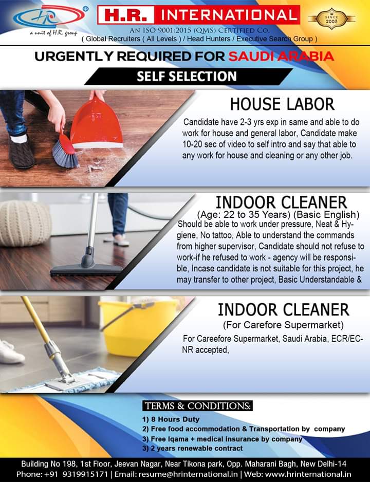 H R International can be choose in best consultant in Delhi for gulf jobs. This office provided services since 2005 and this office is an ISO 9001:2015 (QMS, UAF) certified manpower.