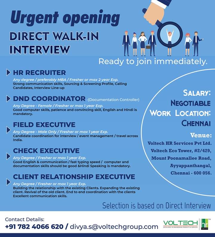 Requirements available in our office is mentioned below in image, If you are matching candidate by condition mentioned in image, You can come our office with original Passport with your CV to Shortlist yourself before Interview, Without Shortlisting process, No Interview will conduct on same date.