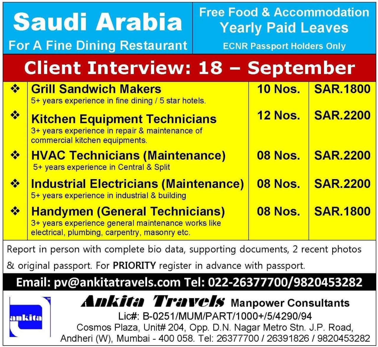 Gulf Overseas Jobs {Post Date~13 September}