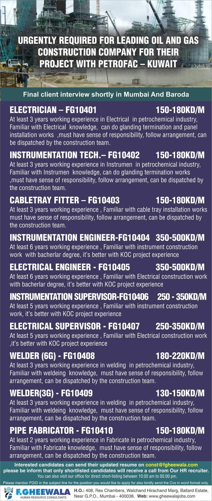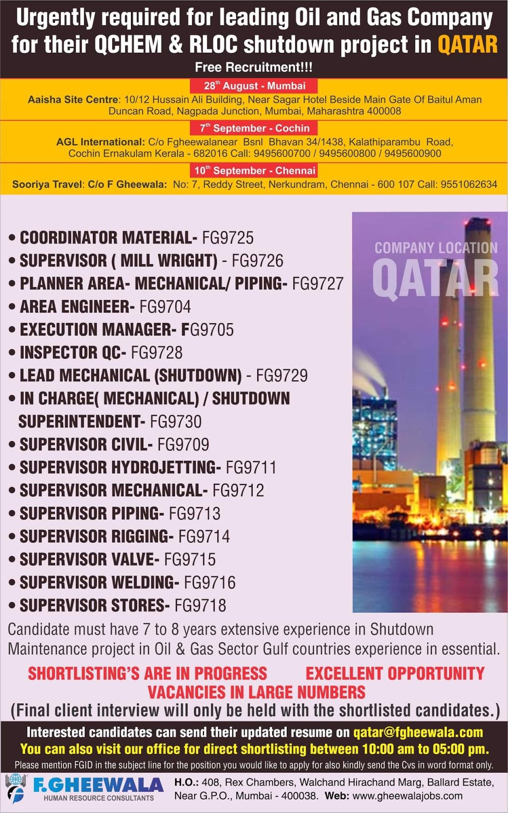 Here are some upcoming interviews of Gulf which is going to held in Mumbai.