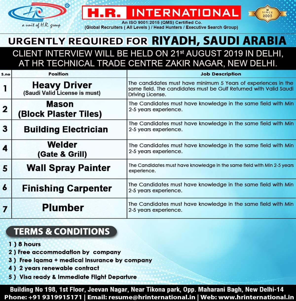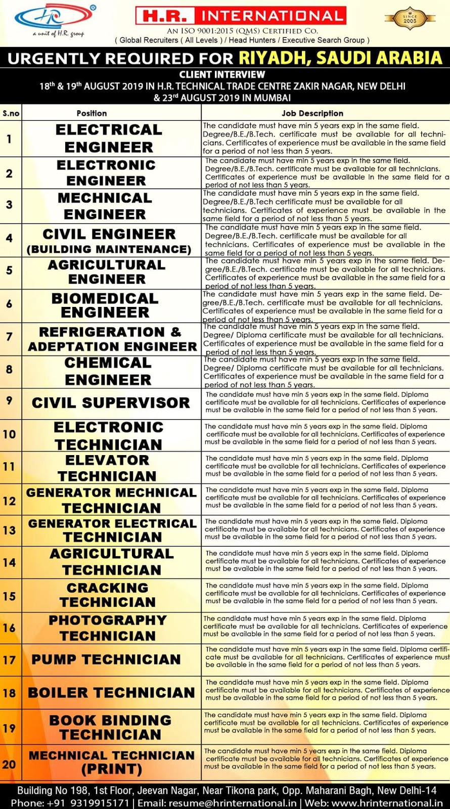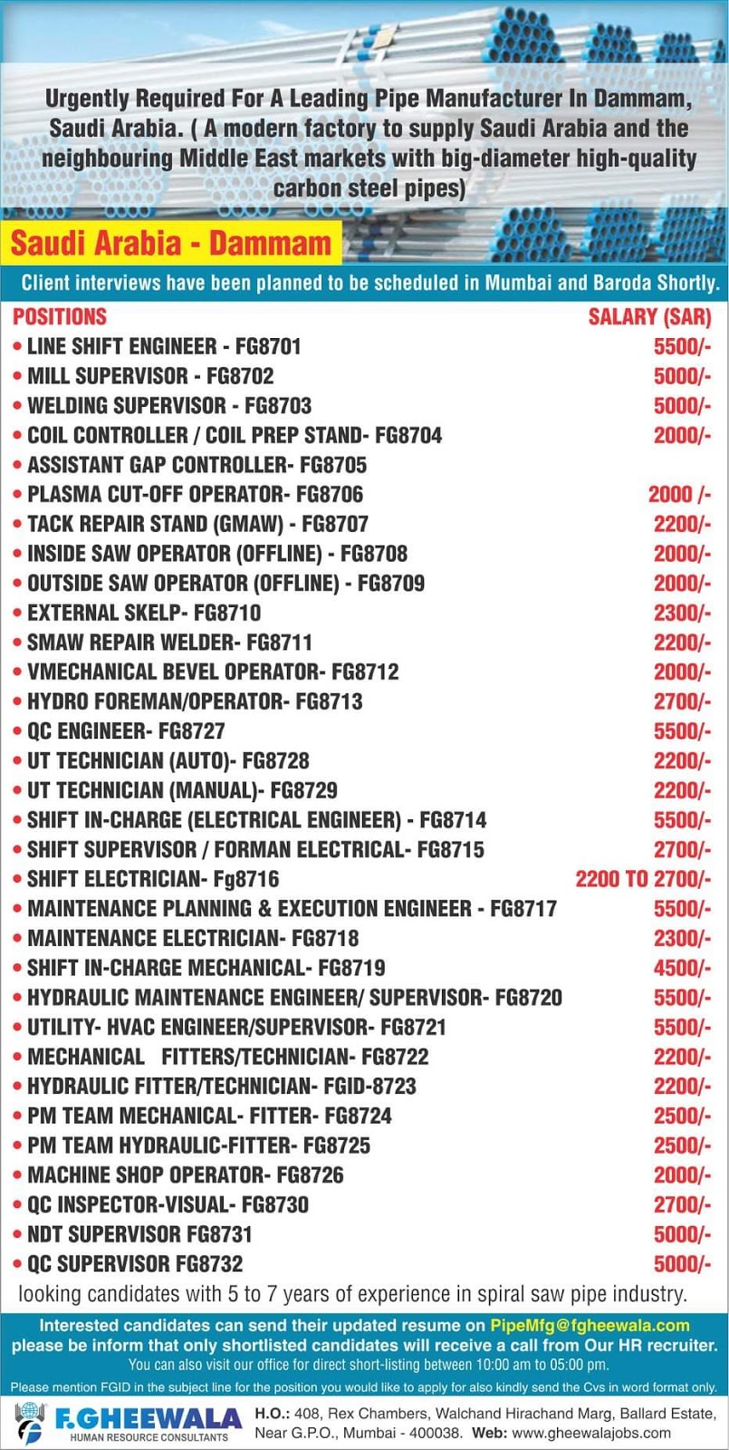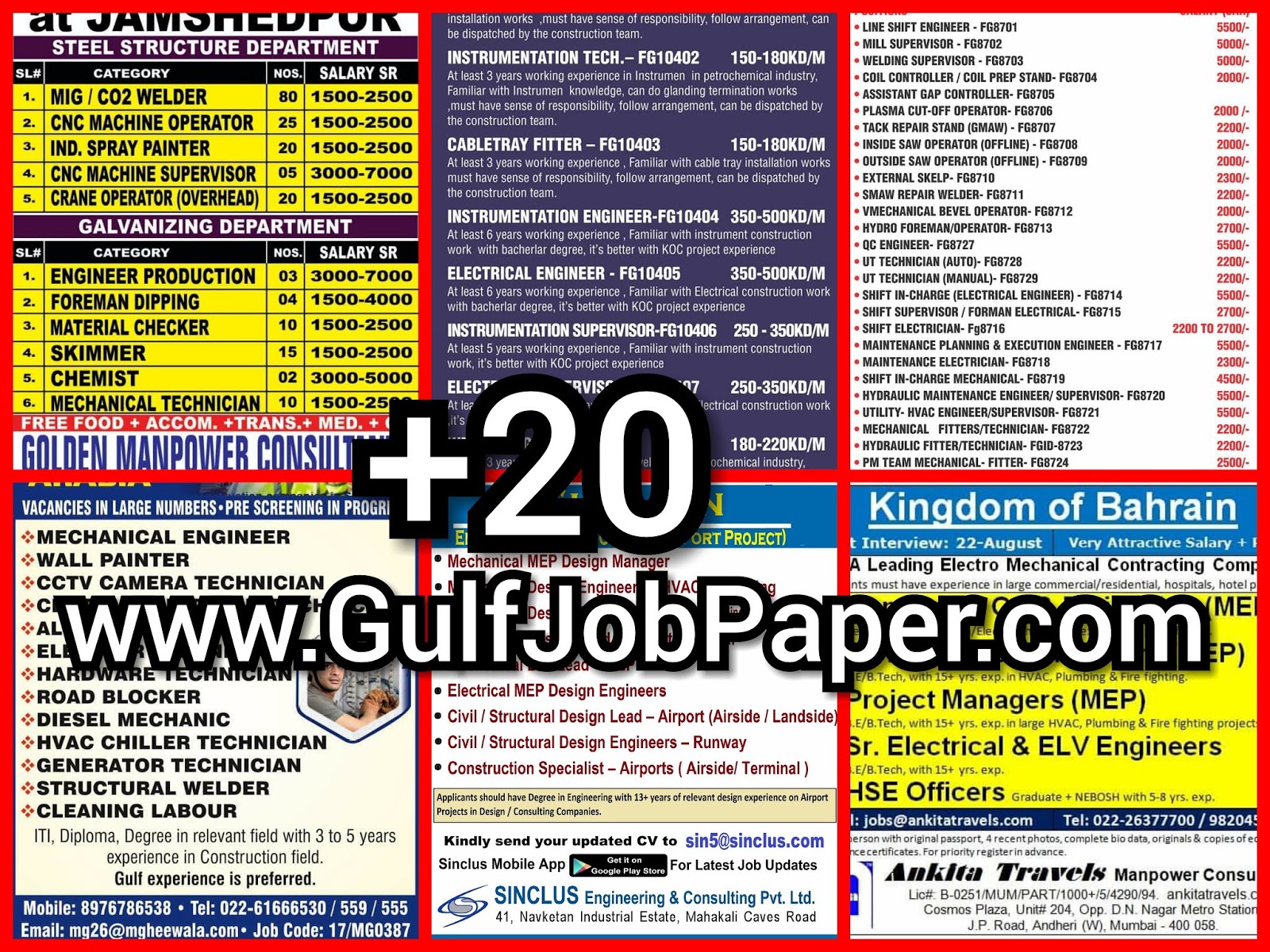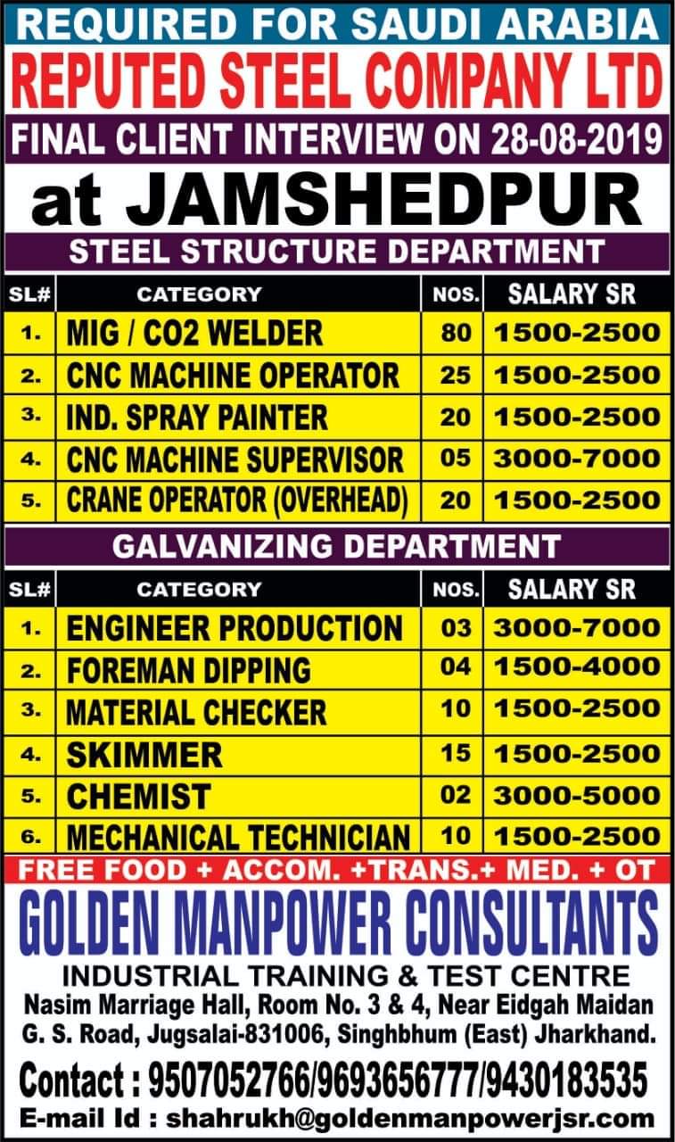 Gulf Overseas Jobs {Post Date~18 August}