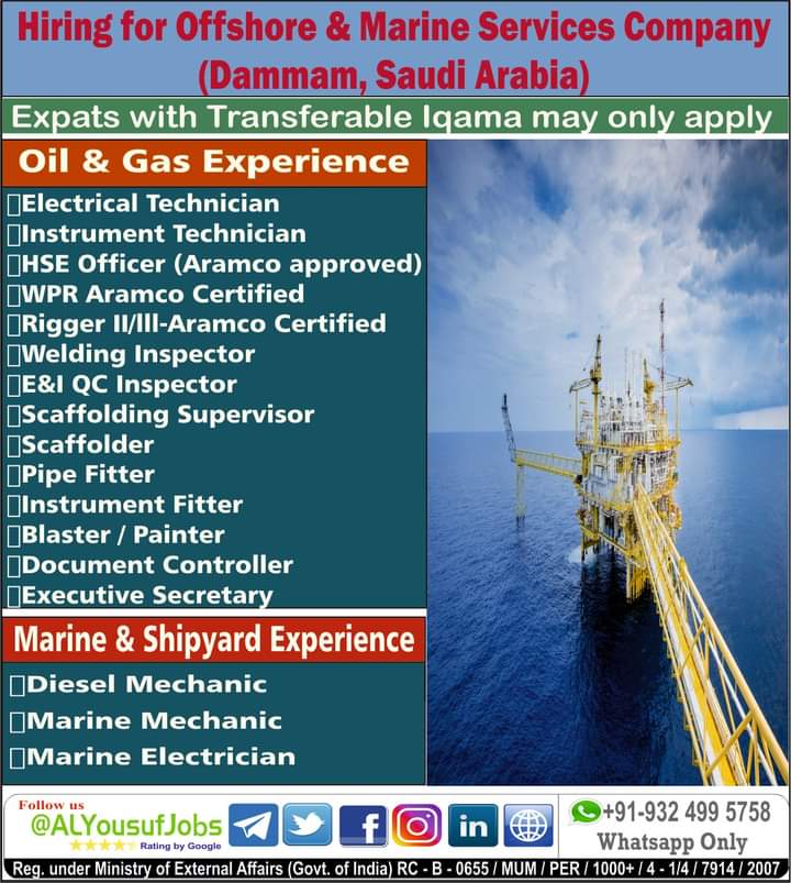 Jobs in Jamnagar Gujarat for civil engineer mechanical engineer, jobs in offshore in Marine service company in Saudi Arabia various positions, other jobs are mentioned below.