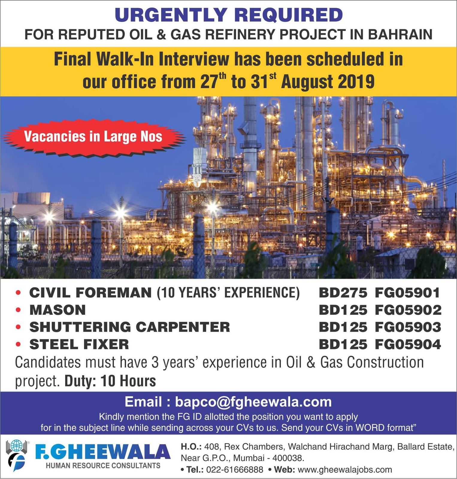Here are some upcoming interviews of Gulf which is going to held in Mumbai.