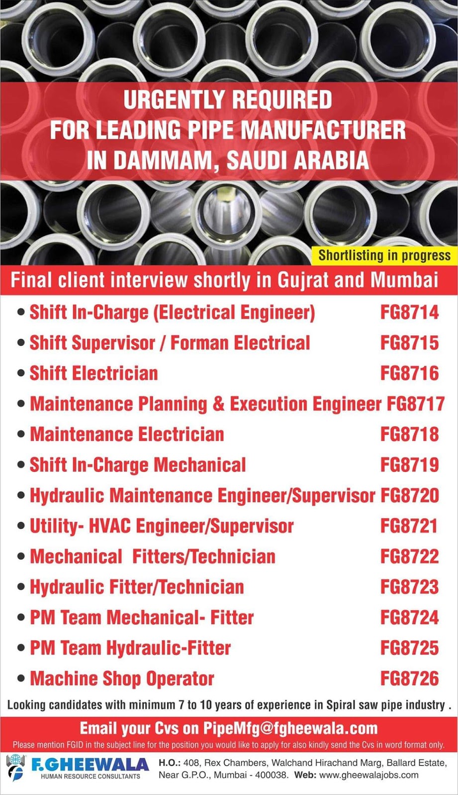 Here are some upcoming interviews of Gulf which is going to held in Mumbai.