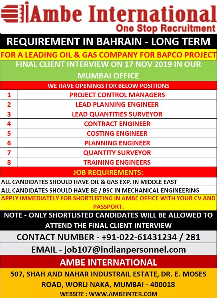 Here are some upcoming interviews of Gulf which is going to held in Mumbai.