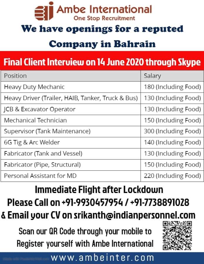 Huge requirement in UAE, this is a CV selection and Skype interview will held after shortlisting.