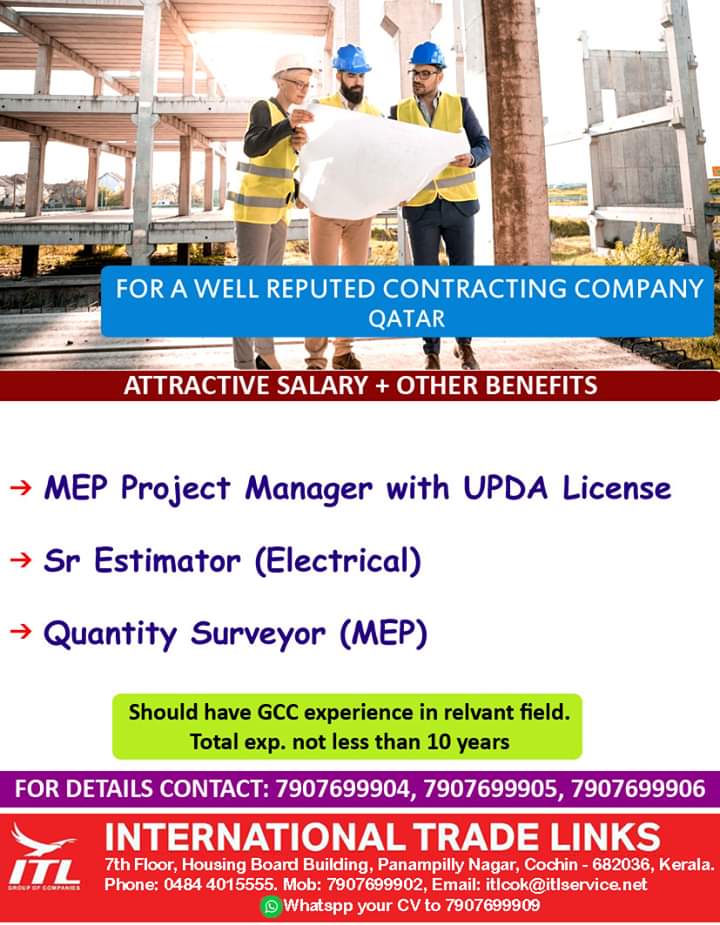 Requirement for contracting company in Qatar, candidates should have GCC experience in relevant field with minimum 10 year experience required