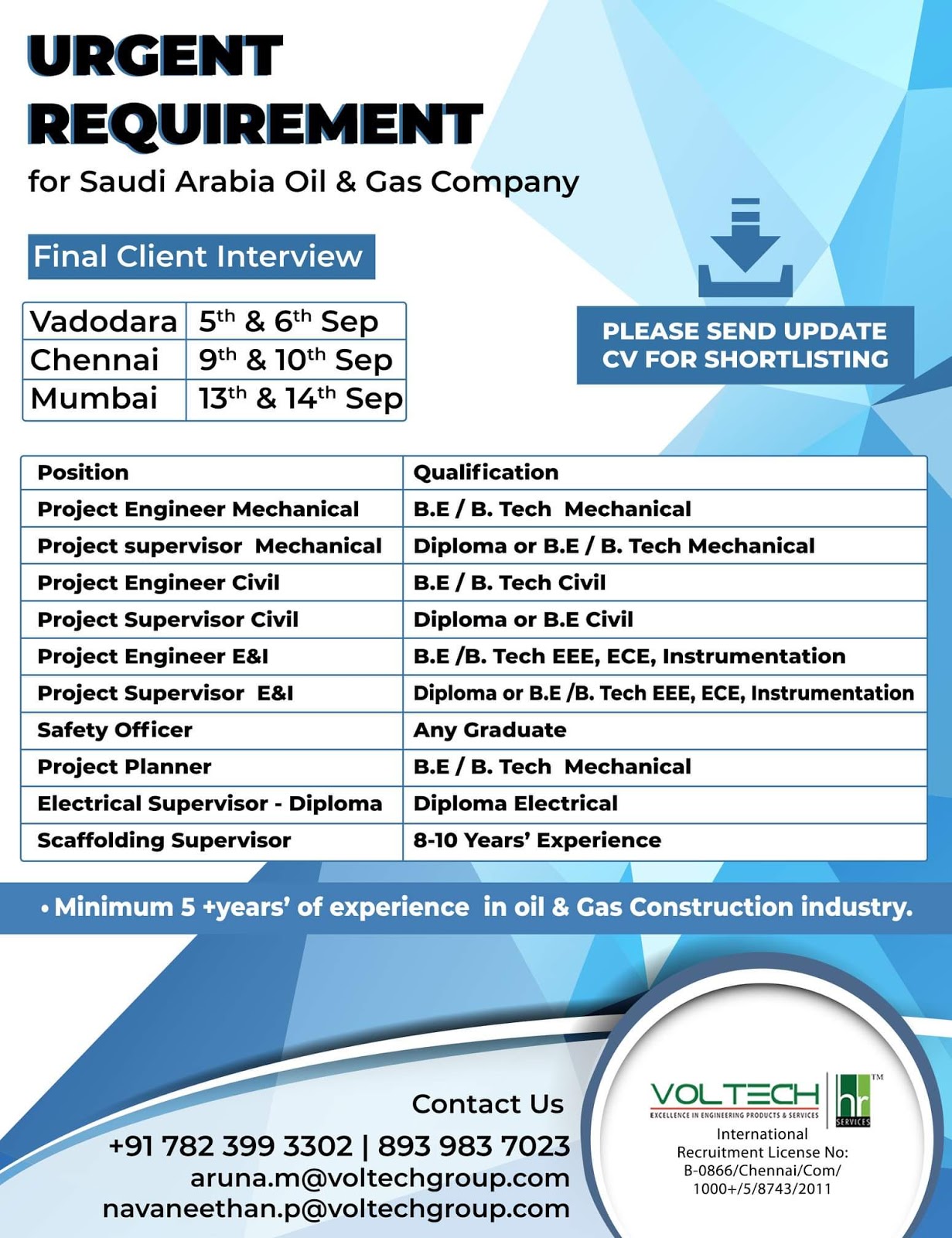 HomeOverseas RequirementsGulf Overseas Jobs {Post Date~5 September}