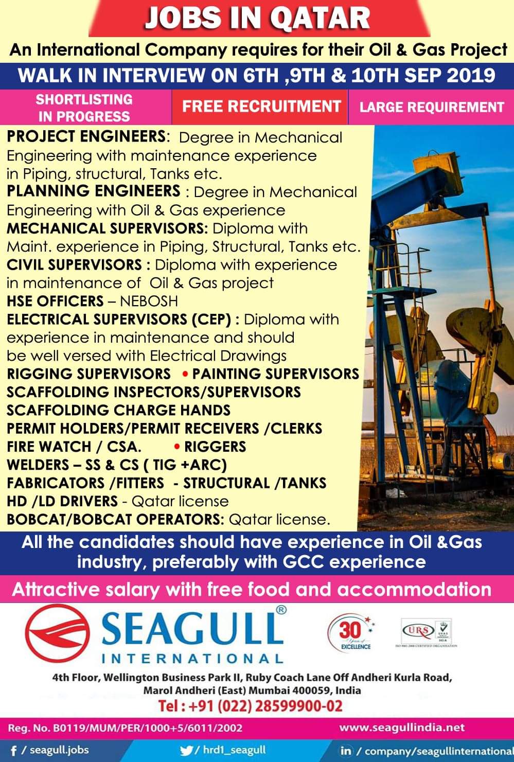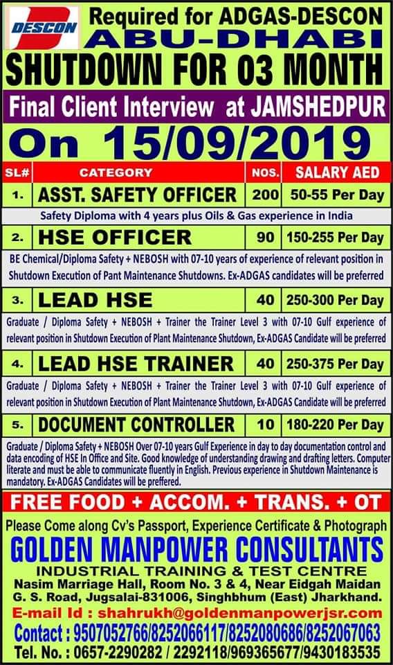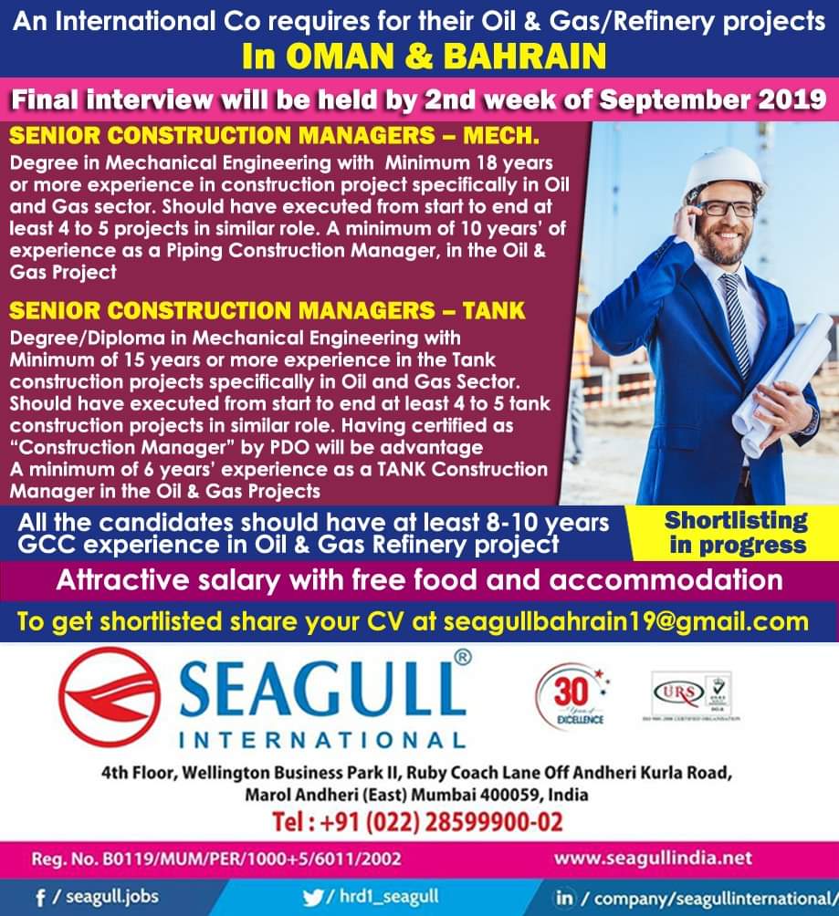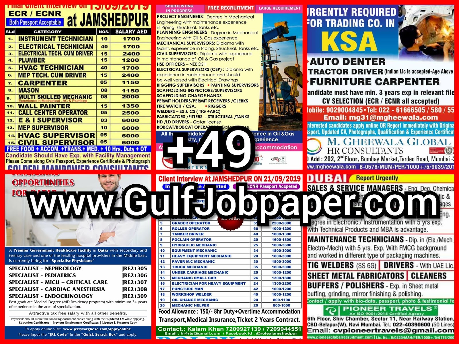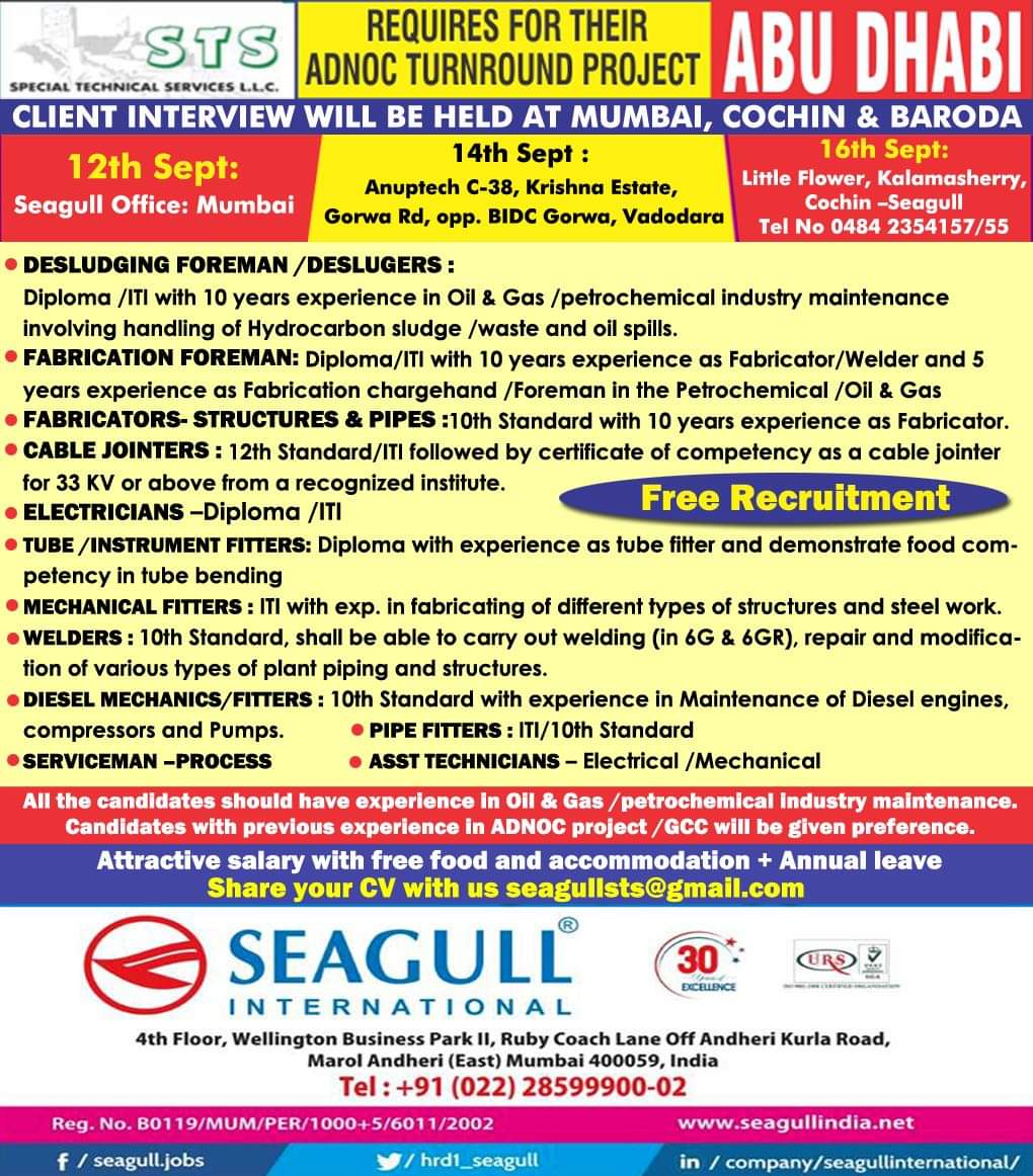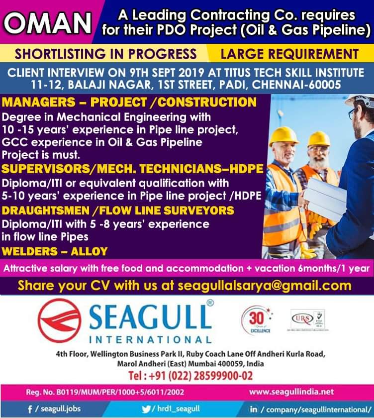 Gulf Overseas Jobs {Post Date~9 September}