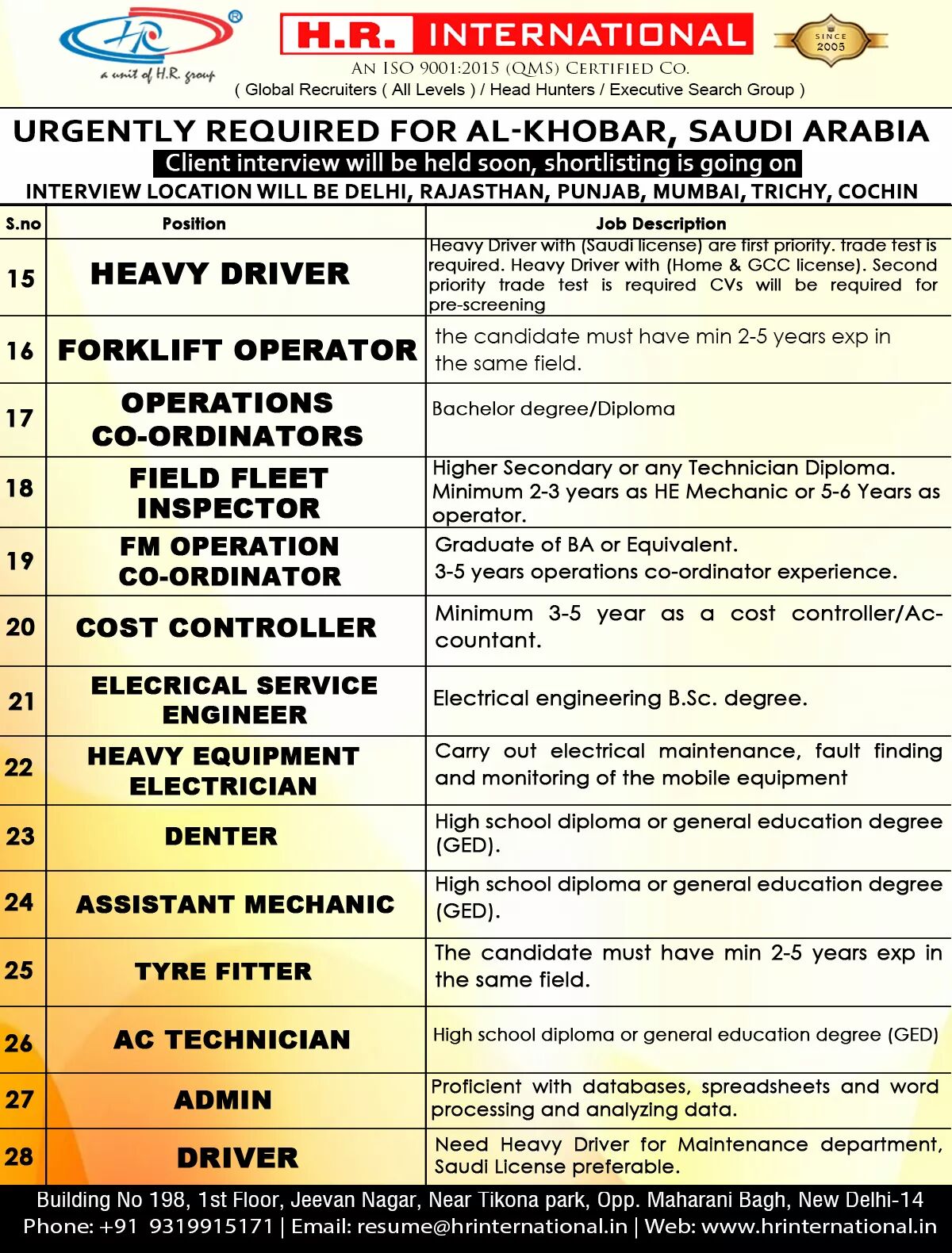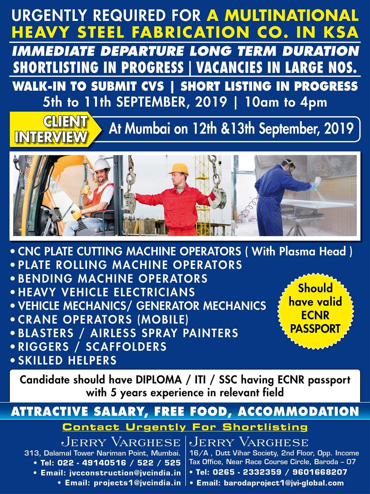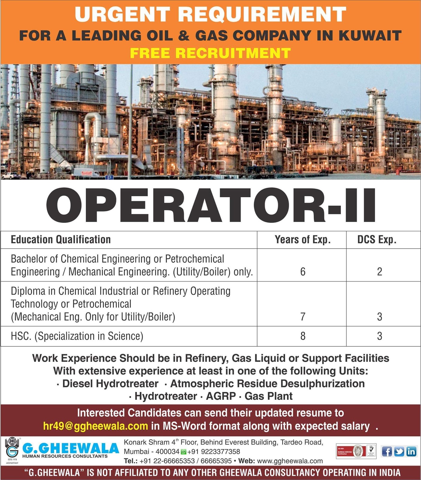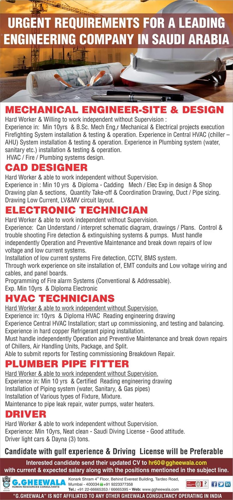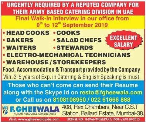 Gulf Overseas Jobs {Post Date~9 September}