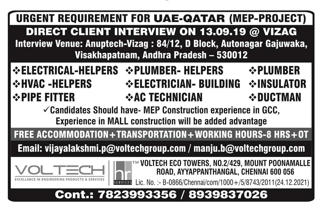 HomeOverseas RequirementsGulf Overseas Jobs {Post Date~9 September}