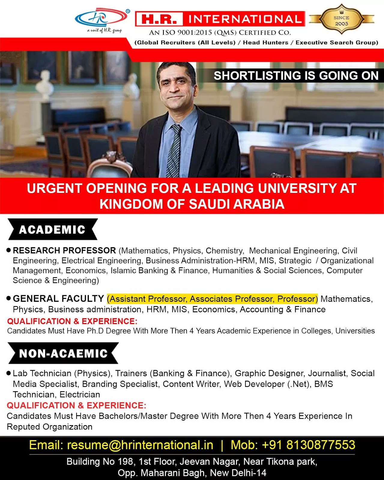 Submit your updated CVS and passport in office.