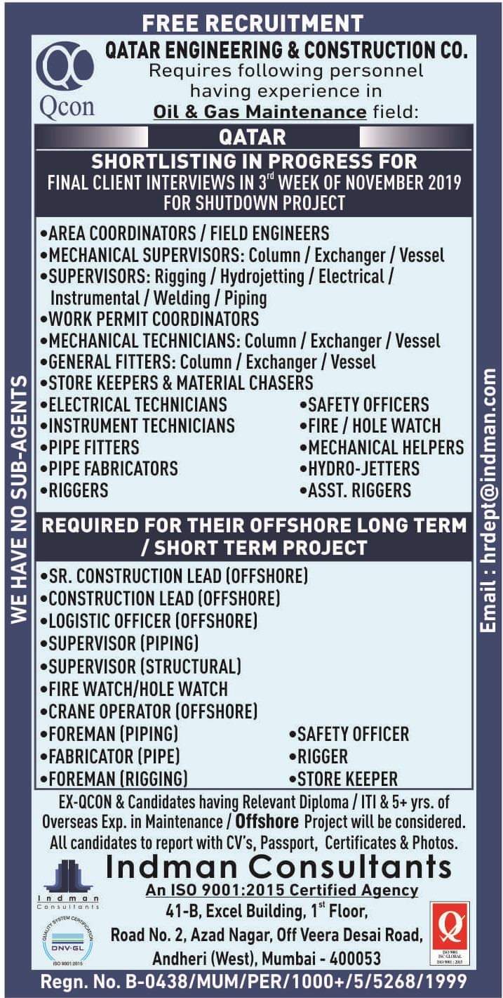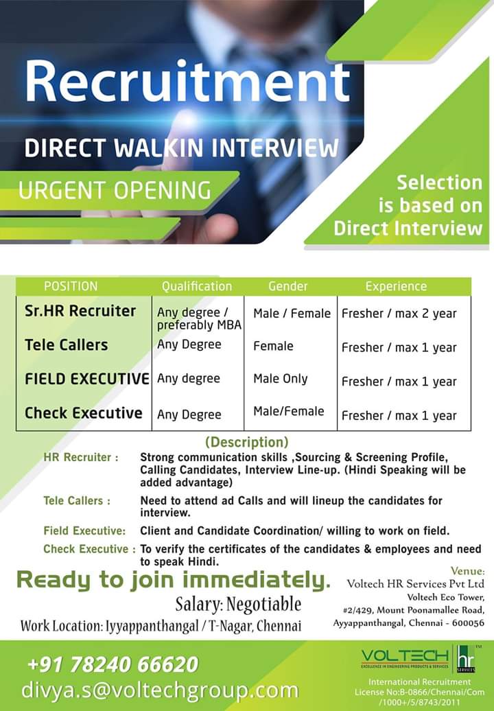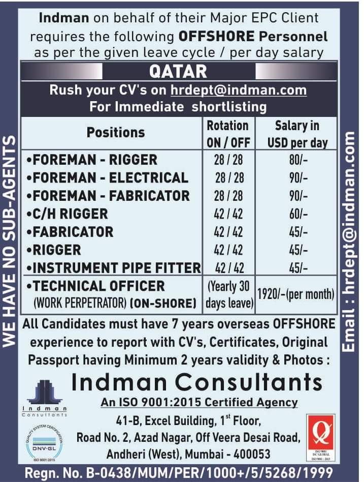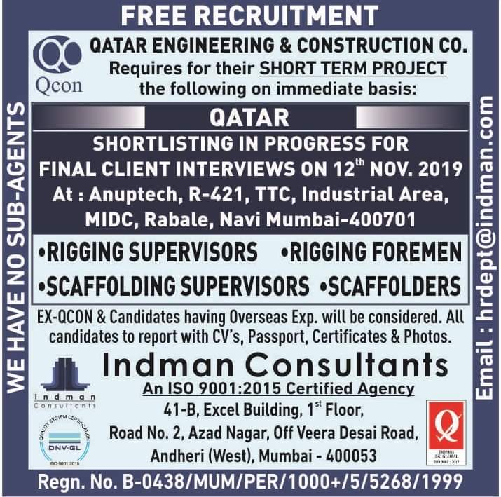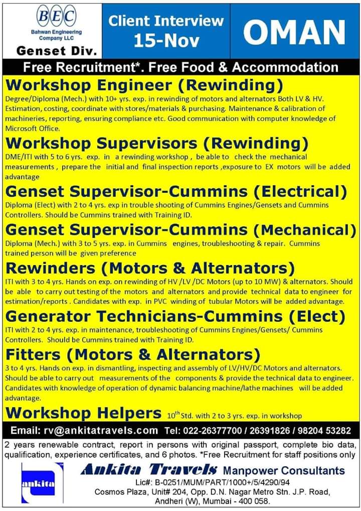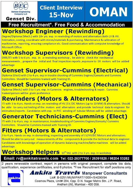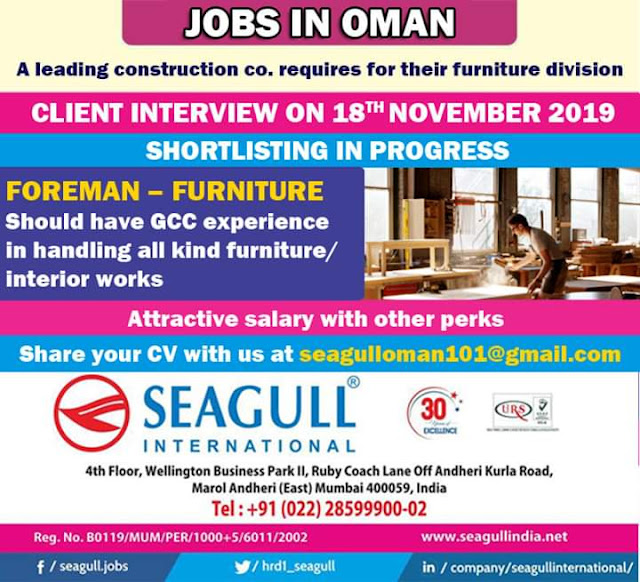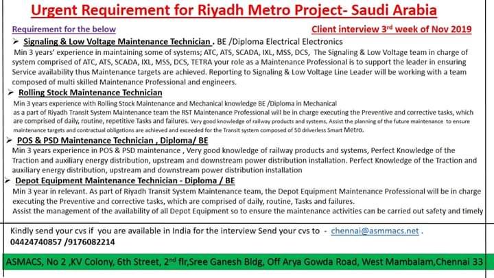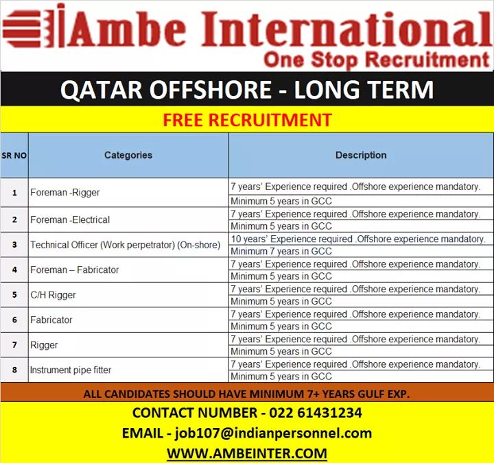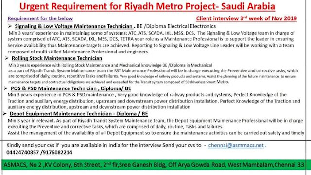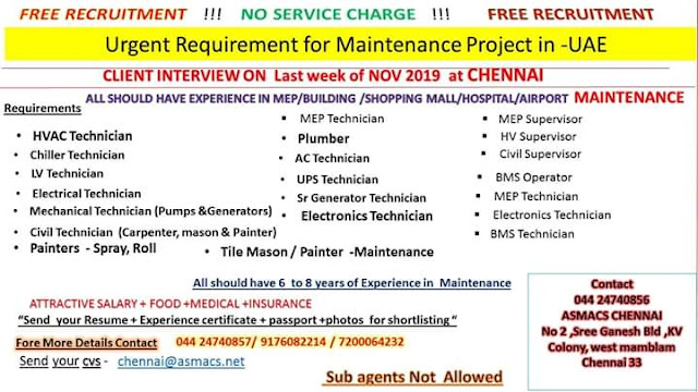 Requirements available in our office is mentioned below in image, If you are matching candidate by condition mentioned in image, You can come our office with original Passport with your CV to Shortlist yourself before Interview, Without Shortlisting process, No Interview will conduct on same date.