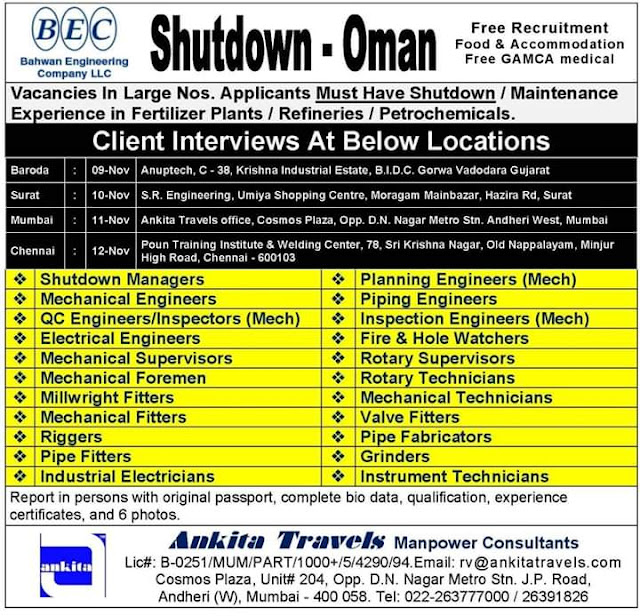 Here are some upcoming interviews of Gulf which is going to held in Mumbai.
