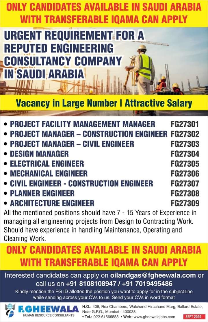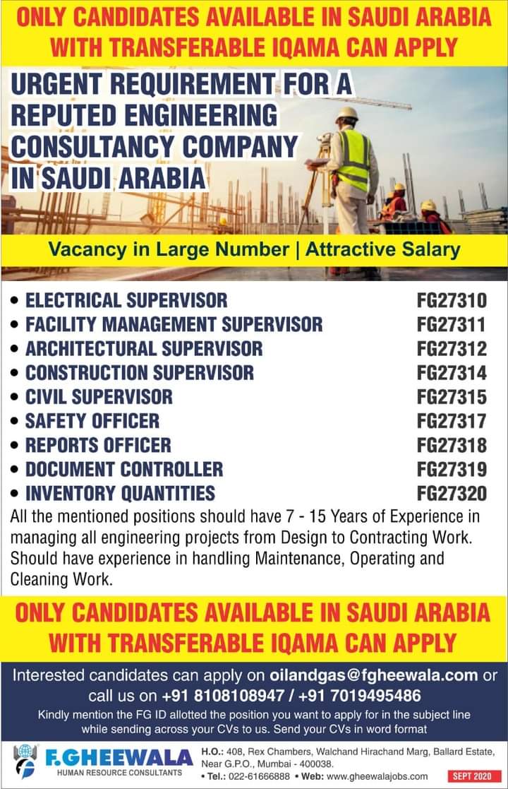 Jobs in Saudi Arabia, Candidates must available in Saudi Arabia