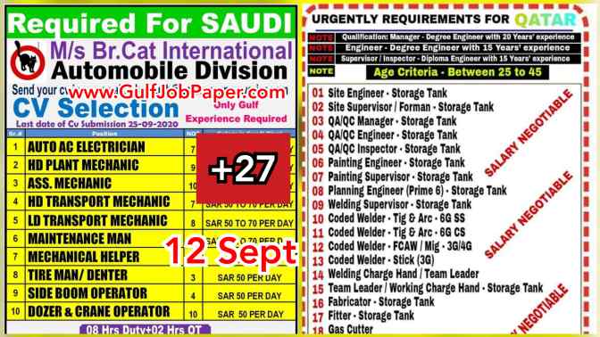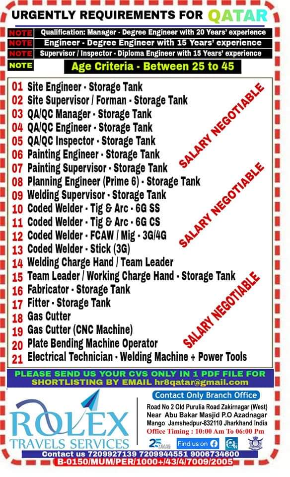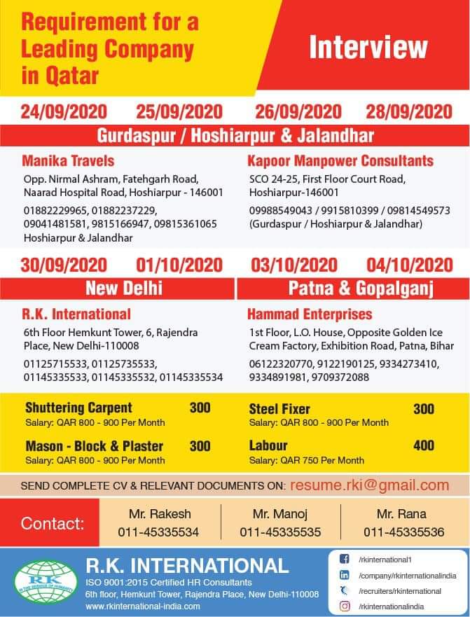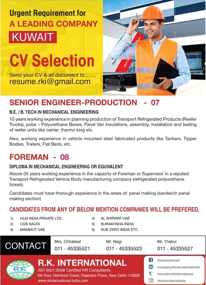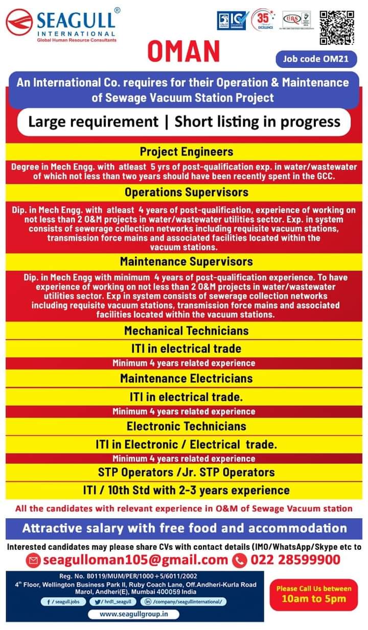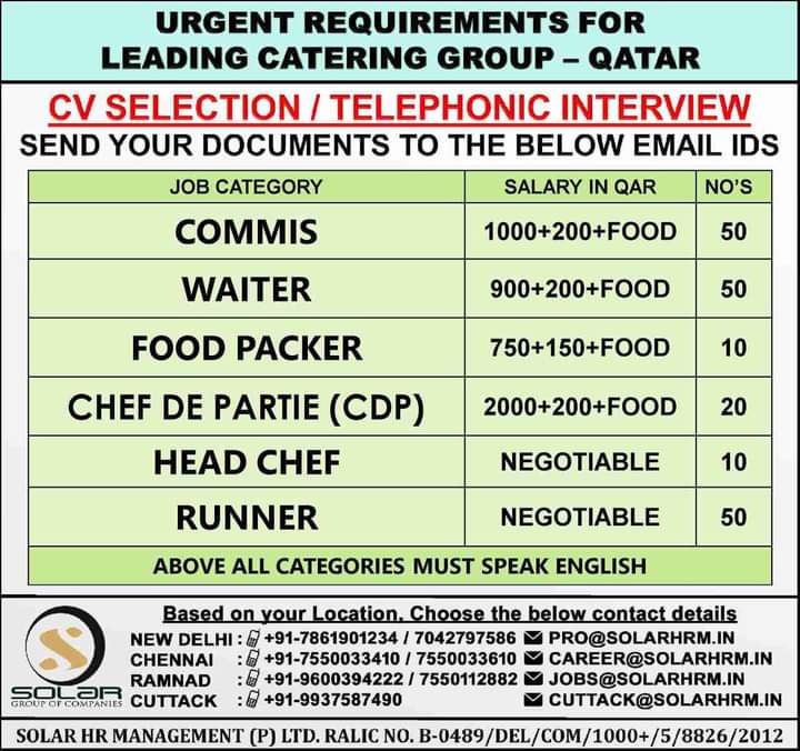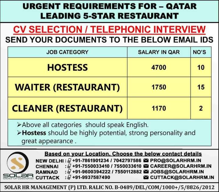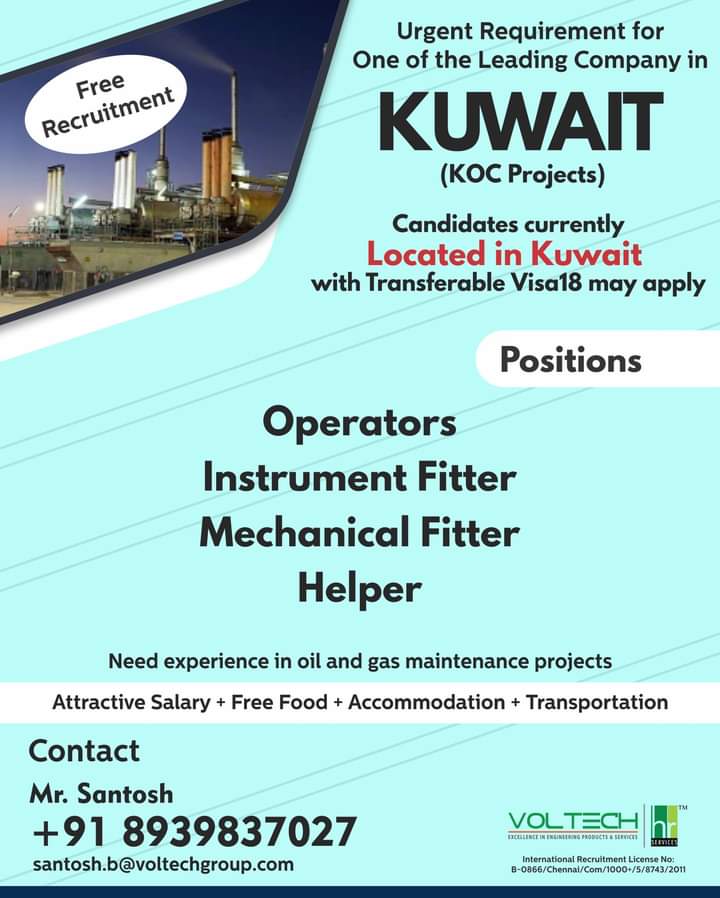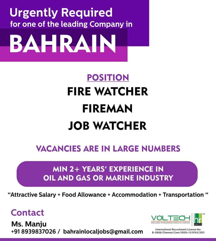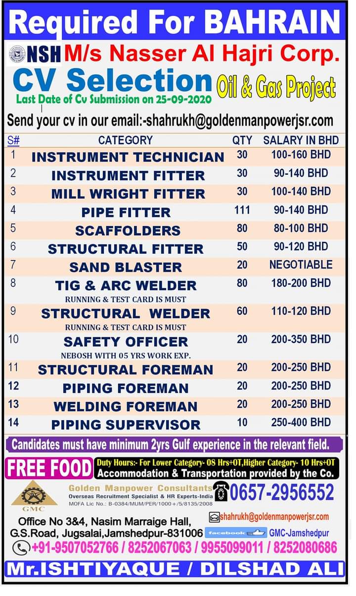 There is many vacancies in this post for various gulf countries for different positions. To know more details, contact to respect office.