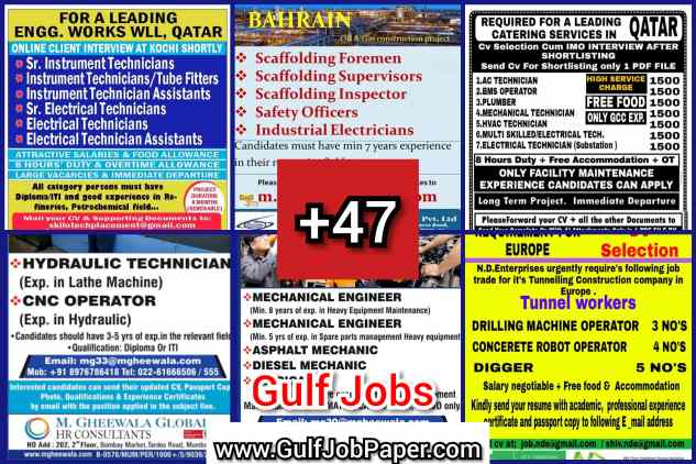 Gulf Overseas Jobs for various gulf countries are mentioned below for Saudi Arabia, Oman, Kuwait,  Bahrain, Dubai Europe, UK, UAE, Qatar.