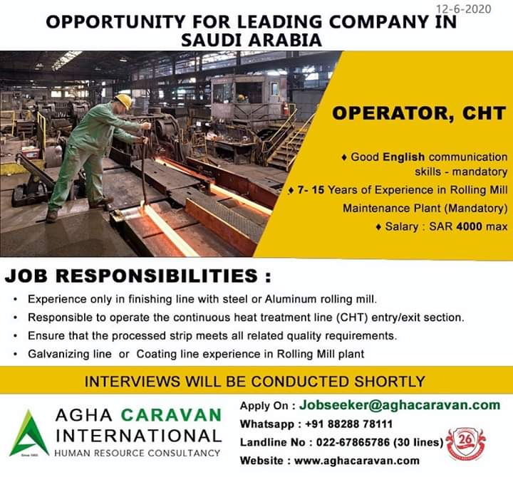 urgent required for leading aluminium company in Saudi Arabia,