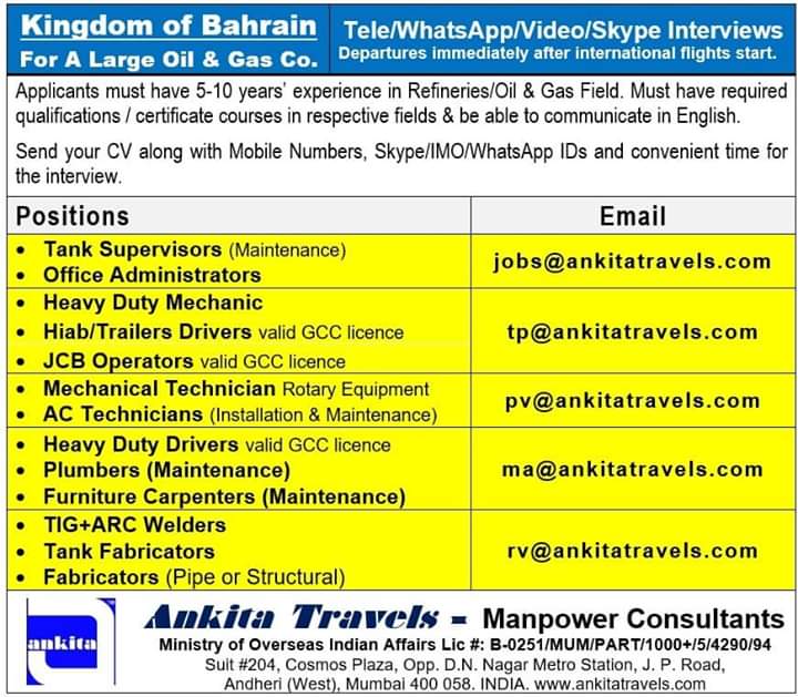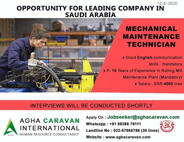 Urgently required for a leading company in Saudi Arabia,
