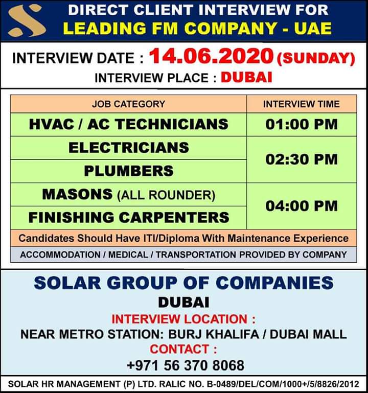 Required for leading FM company in UAE,