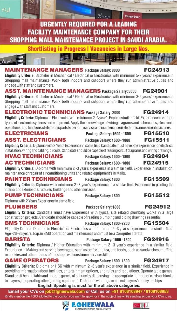 Jobs in different gulf countries are mentioned below.
