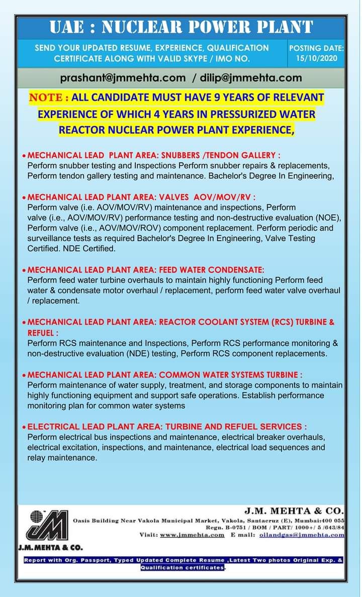 - Mechanical Lead Plant Area: Feed Water Condensate
