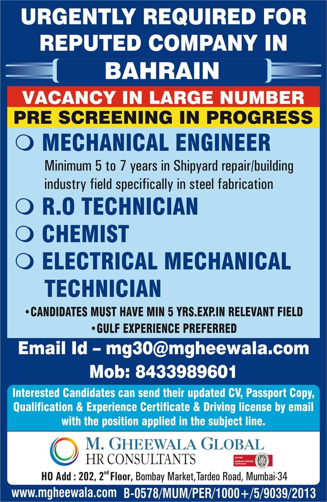 HomeBahrain JobsGulf Overseas Jobs~15 September