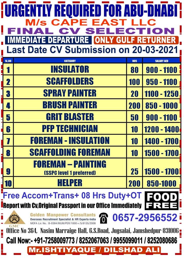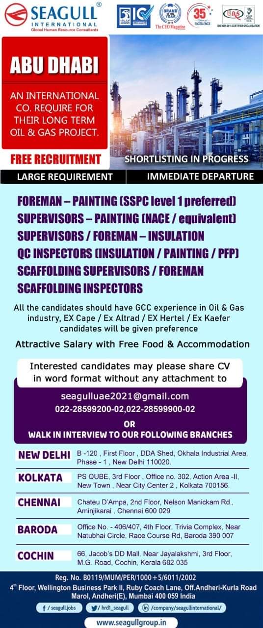 – Insulation - QC Inspectors (Insulation / Painting / PFP)