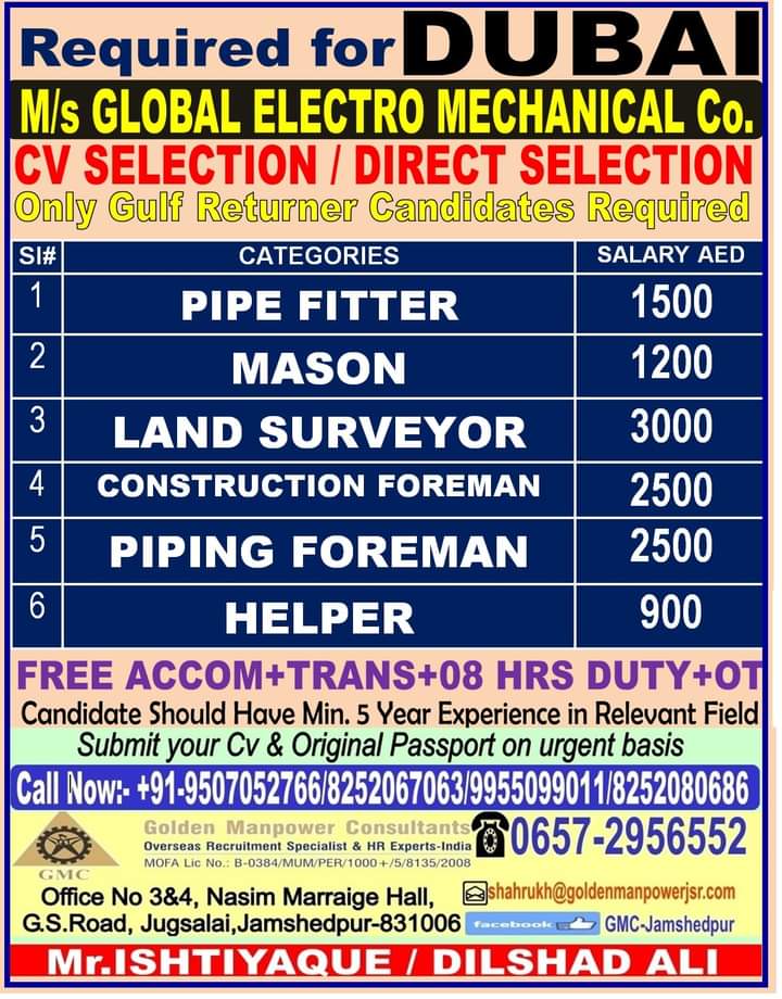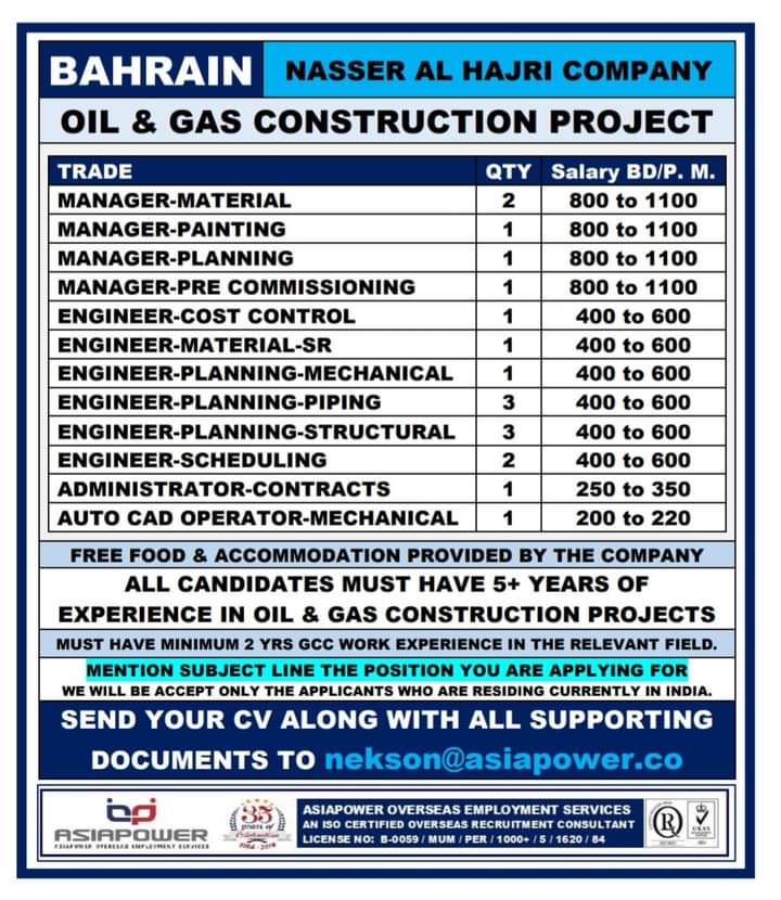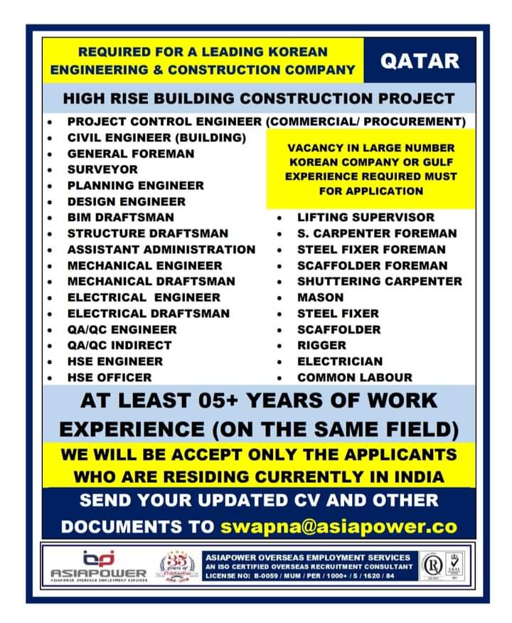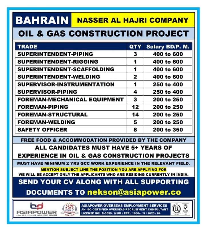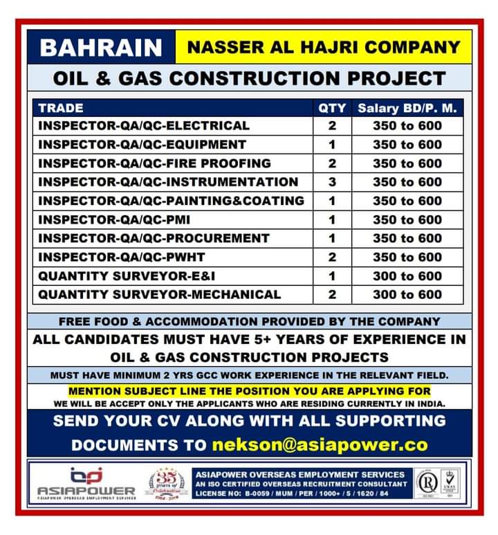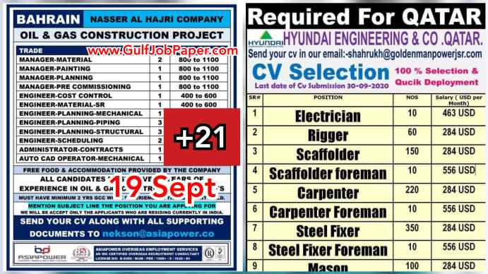 Jobs in Saudi Arabia, Qatar, Bahrain, UAE, Kuwait for various positions are mentioned below.