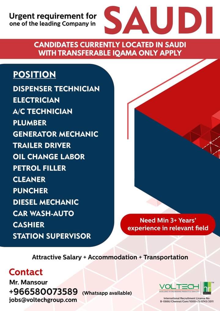 Jobs in Saudi Arabia, Candidates must available in Saudi