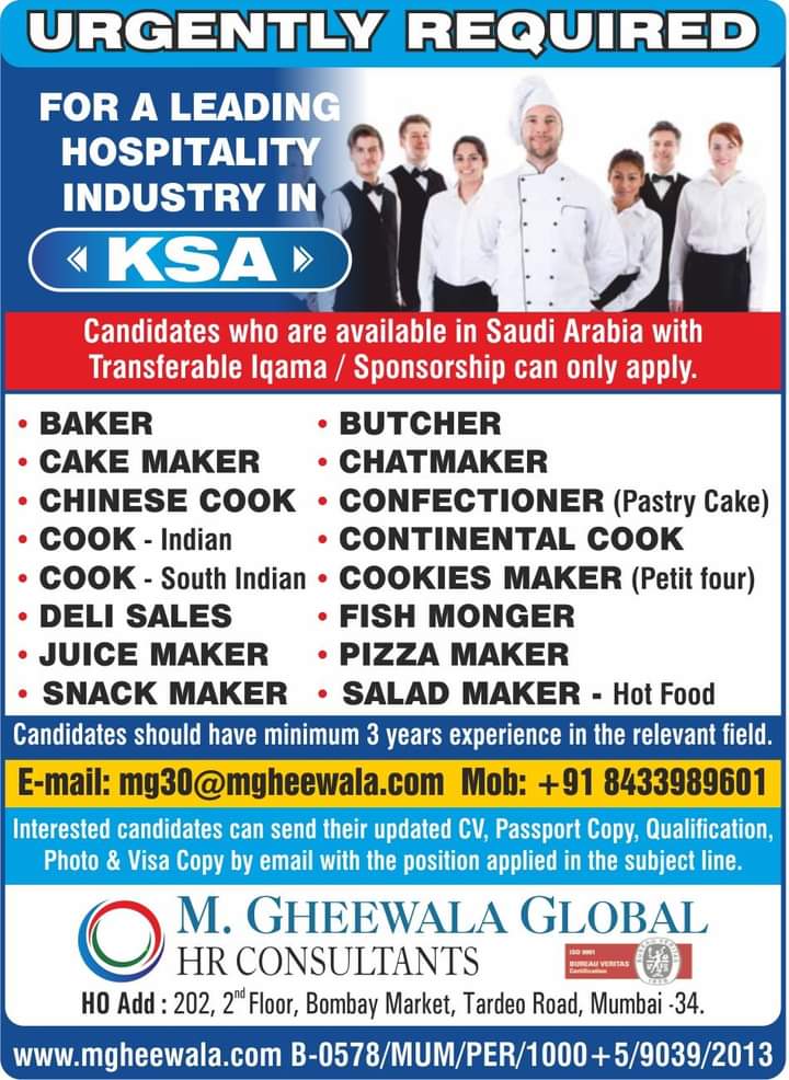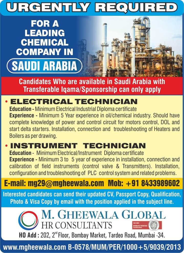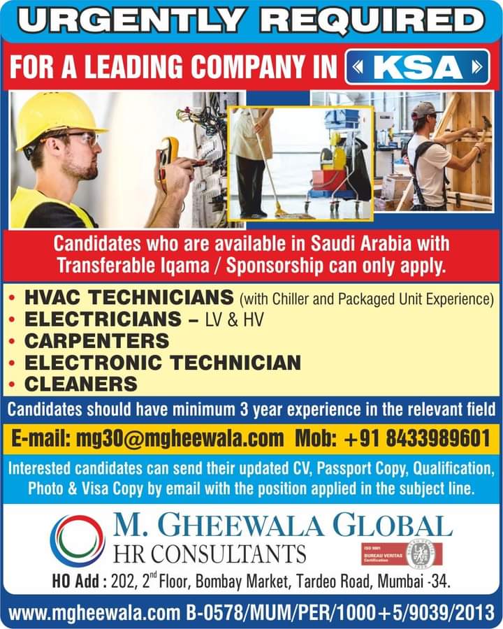 Jobs in Saudi Arabia, Candidates must available in Saudi Arabia