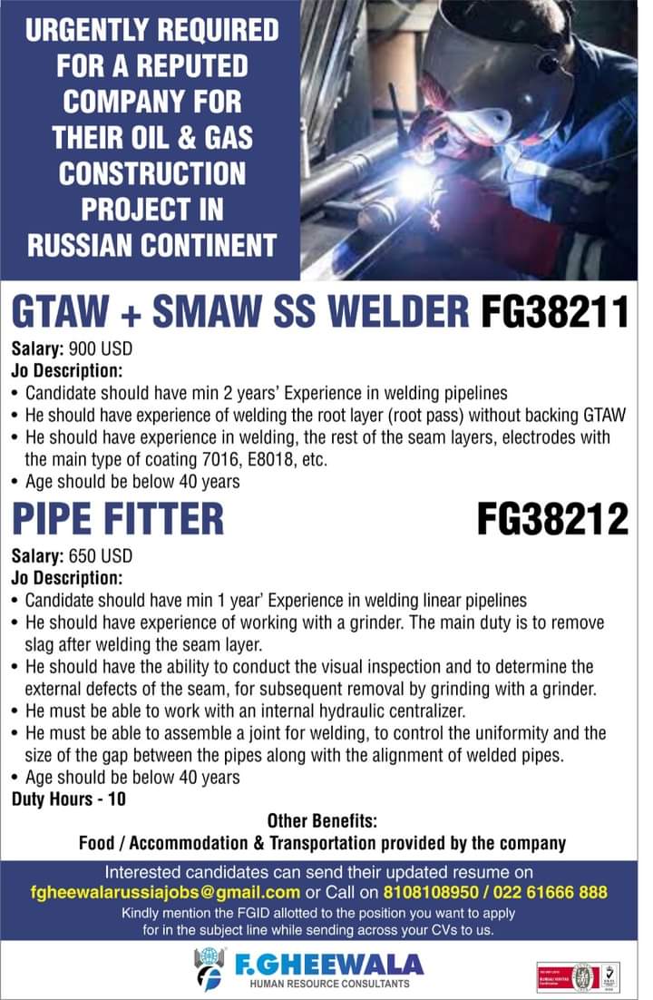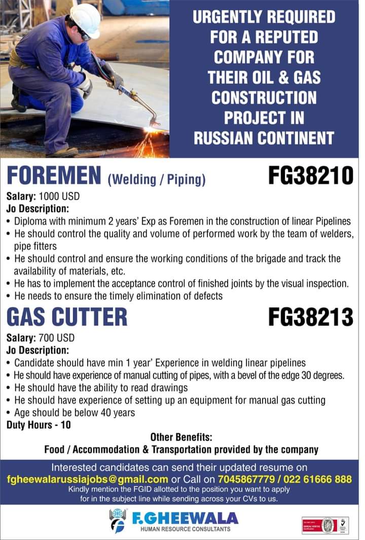 - Foremen (Welding / Piping)