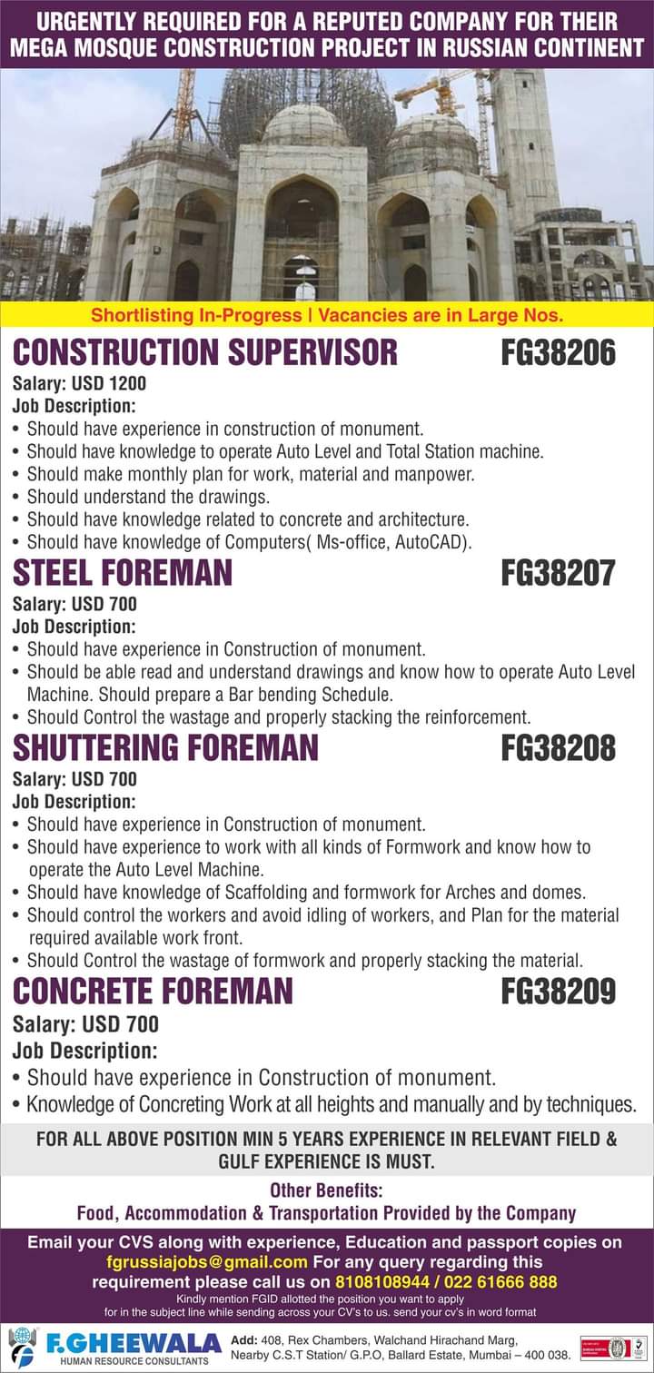 - Shuttering Foreman