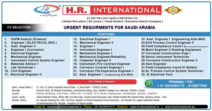 Jobs in Saudi Arabia, Oman, Qatar, Kuwait, Europe, UAE.