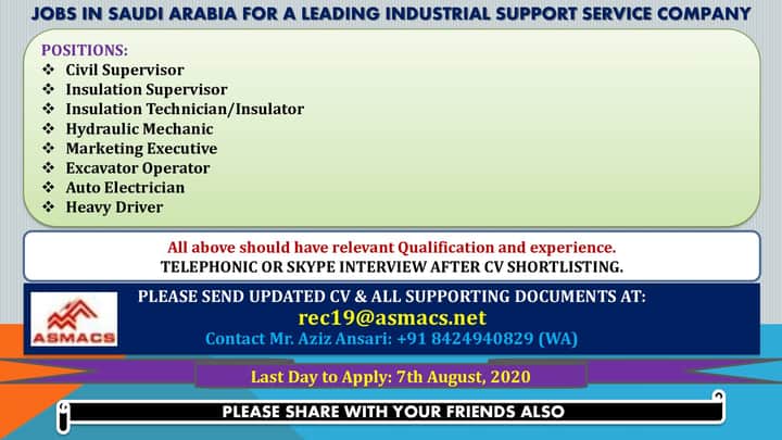 Overseas jobs, there are vacancies in Gulf countries are mentioned below.